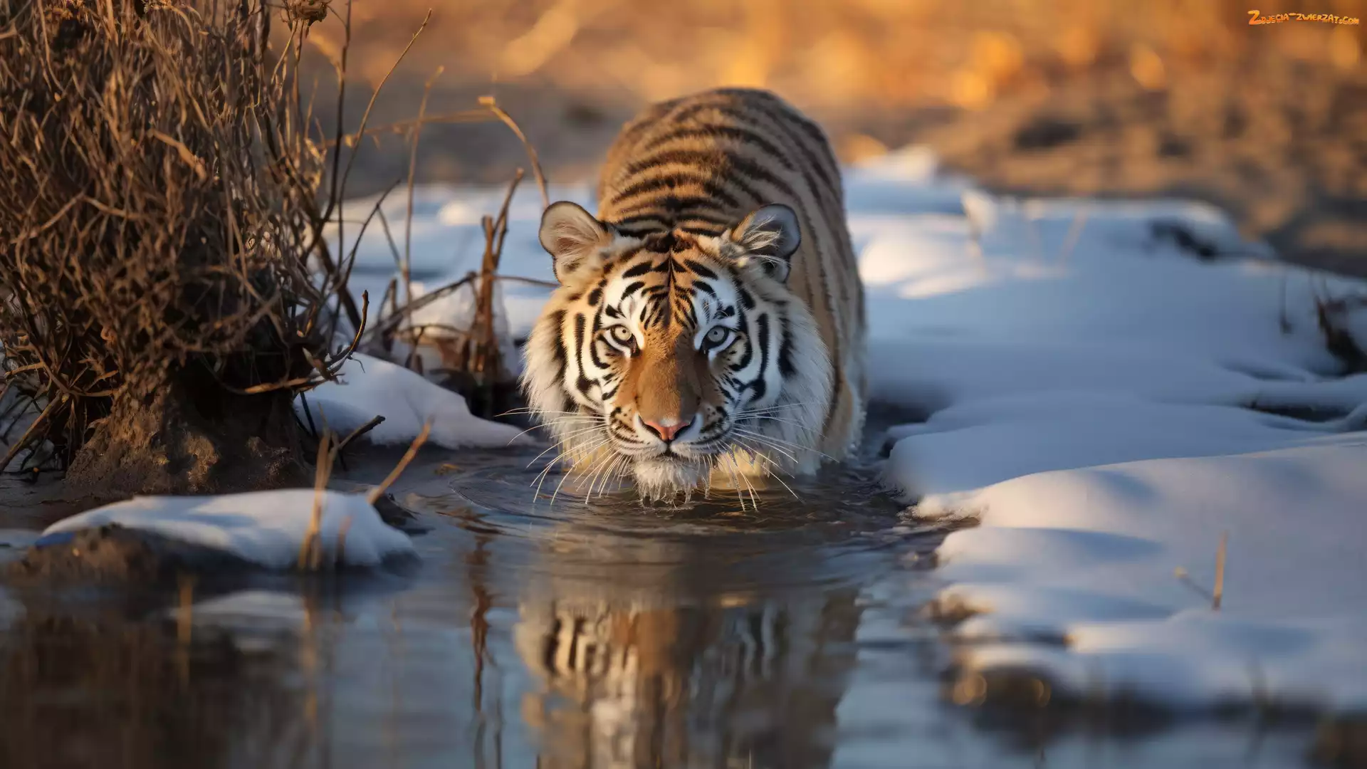 Zdjęcie: Rośliny, Śnieg, Grafika, Tygrys, Woda