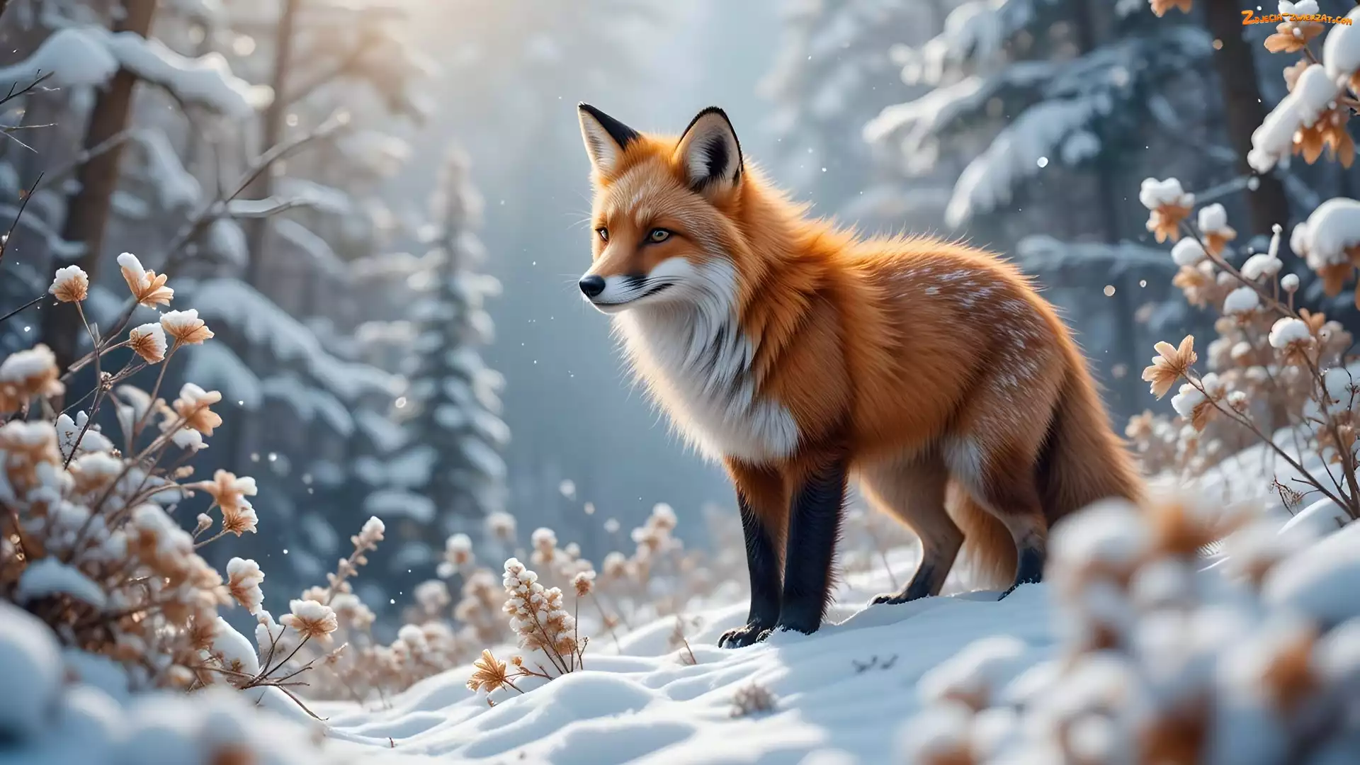Zdjęcie: Ośnieżone, Rudy, Lis, Śnieg, Rośliny, Zima, Drzewa