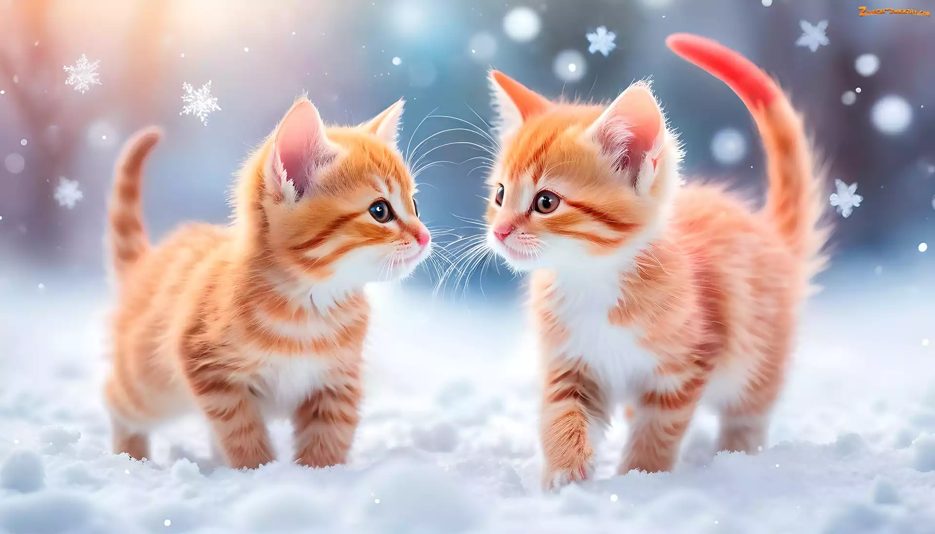 Zdjęcie: Rude, Koty, Grafika, Śnieg
