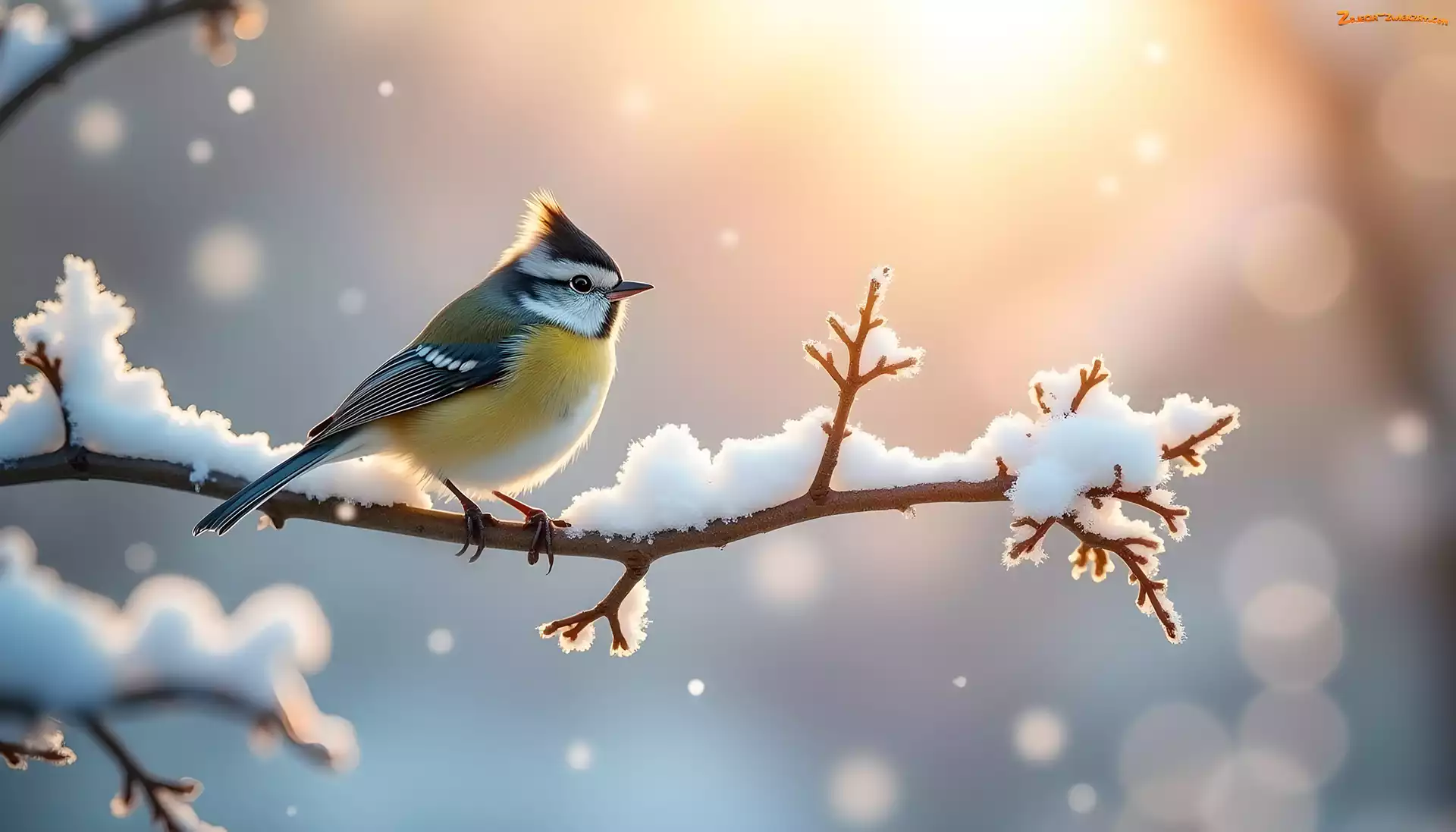Zdjęcie: Sikorka, Gałąź, Grafika, Śnieg