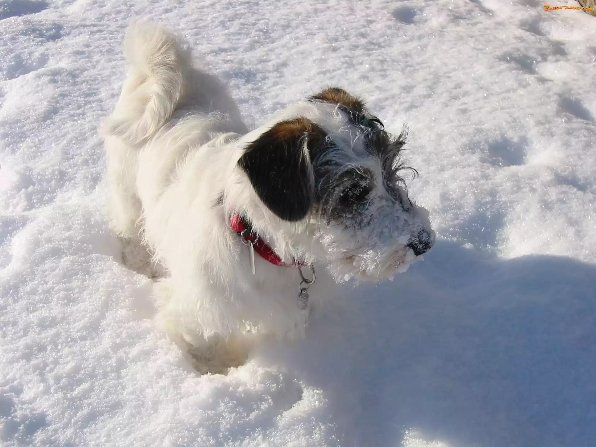 Zdjęcie: śnieg, obroża, Sealyham Terrier, czerwona
