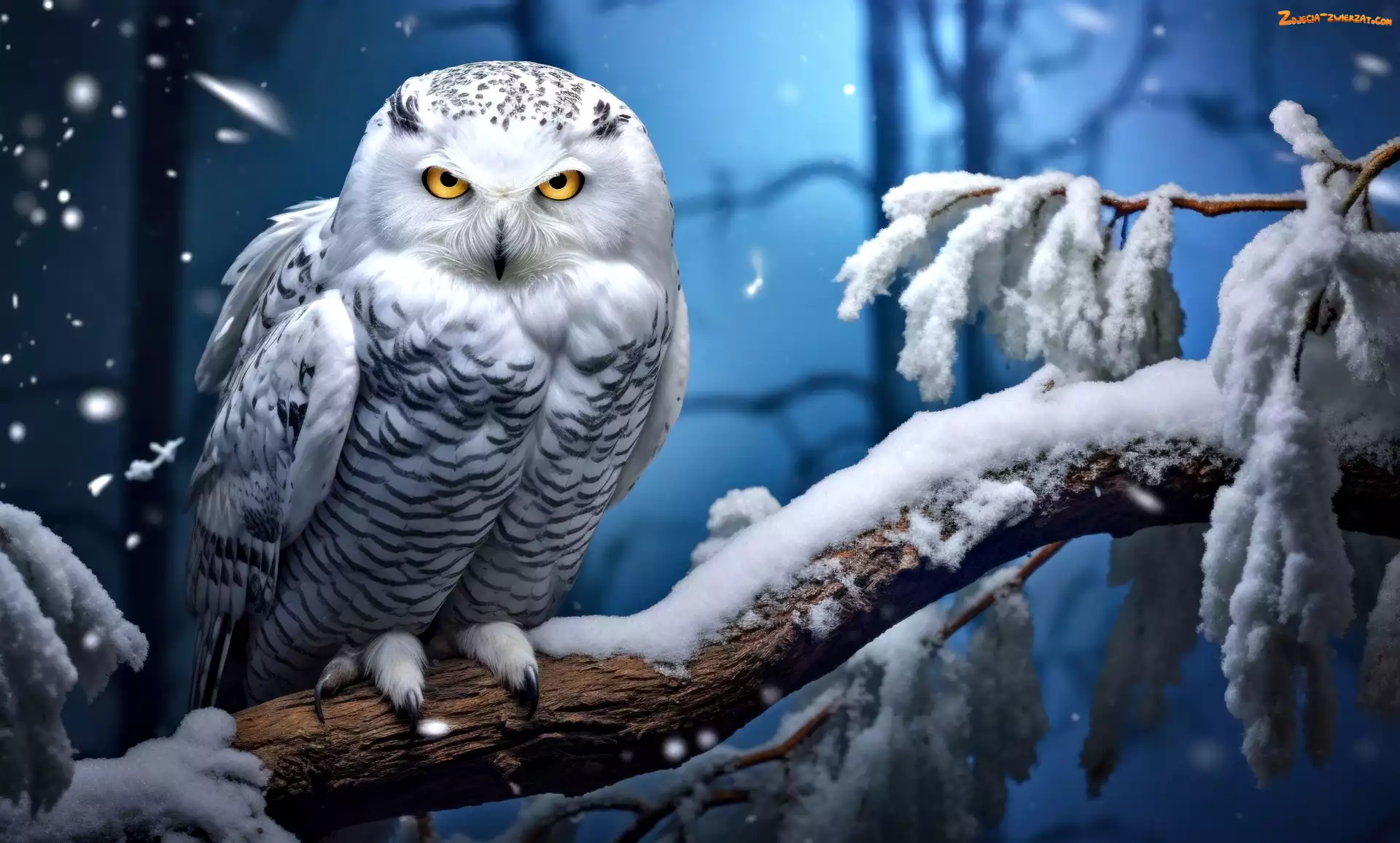 Zdjęcie: Sowa śnieżna, Konar, Grafika, Zima