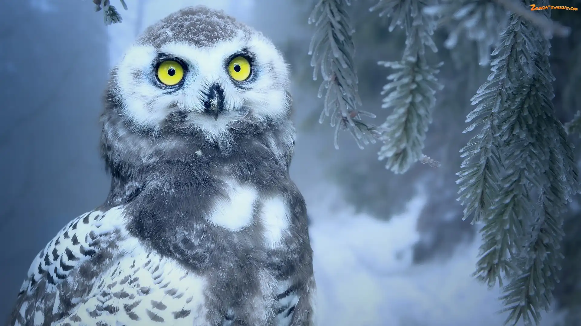 Zdjęcie: Sowa śnieżna, Ptak, Gałązka, Oczy, Młoda, Żółte