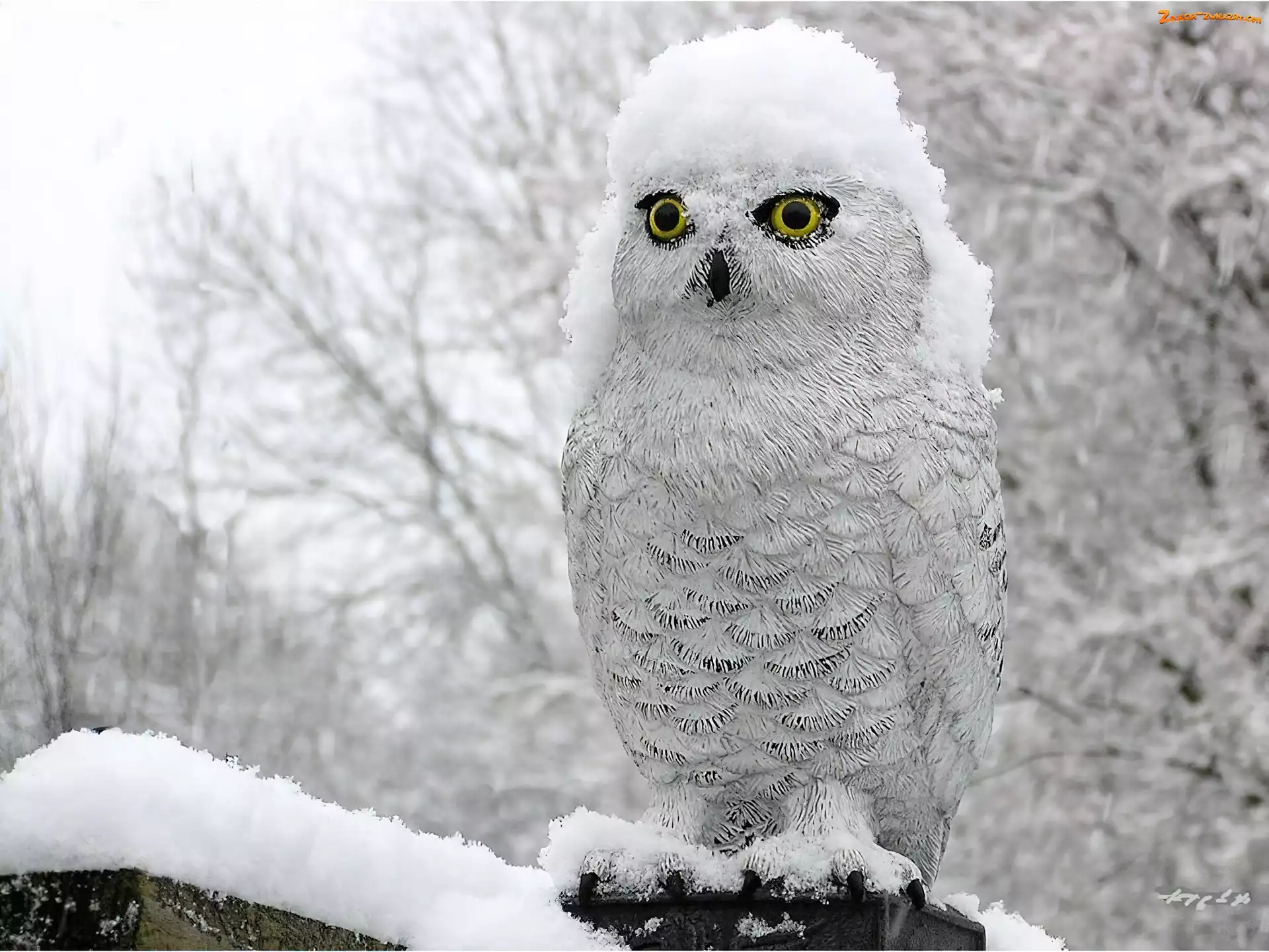 Zdjęcie: Drzewa, Sowa, Śnieg