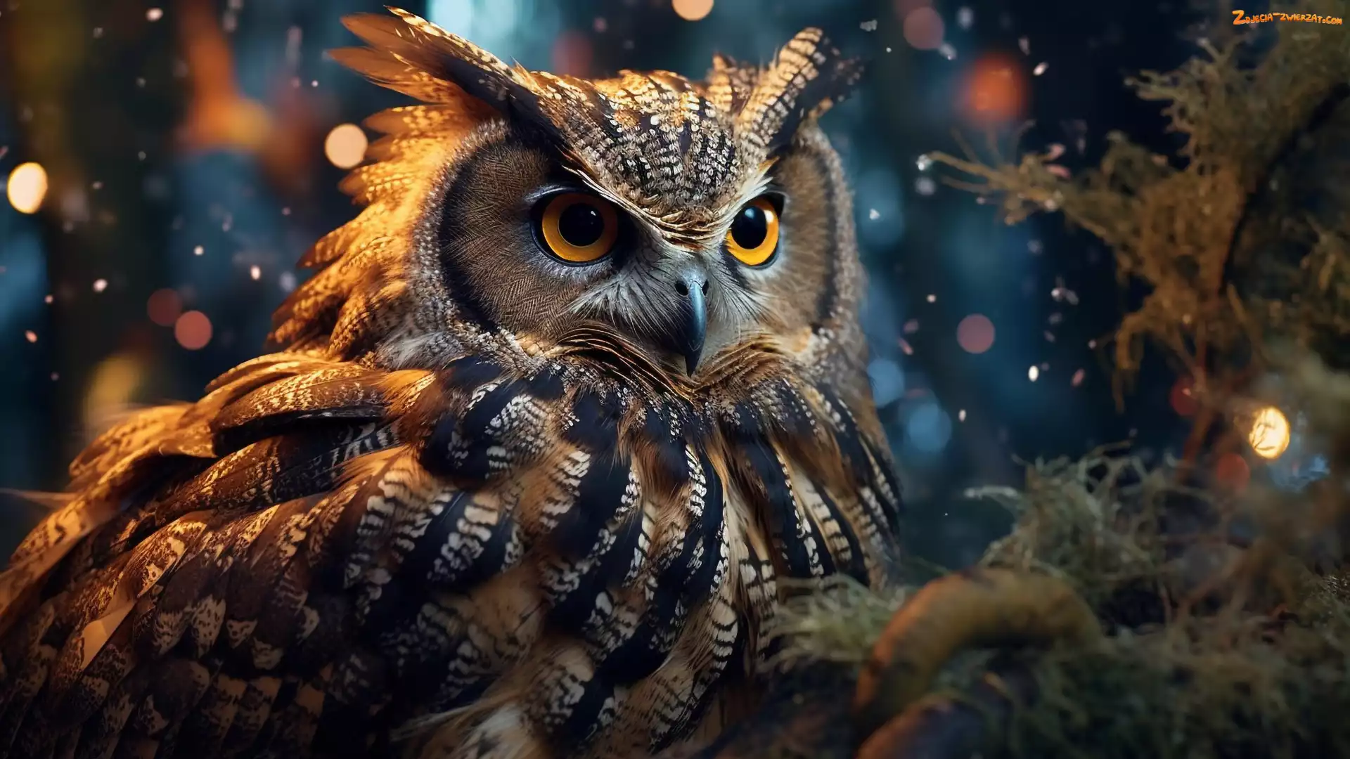 Zdjęcie: Grafika, Puchacz, Ptak, Sowa, Gałęzie, Noc
