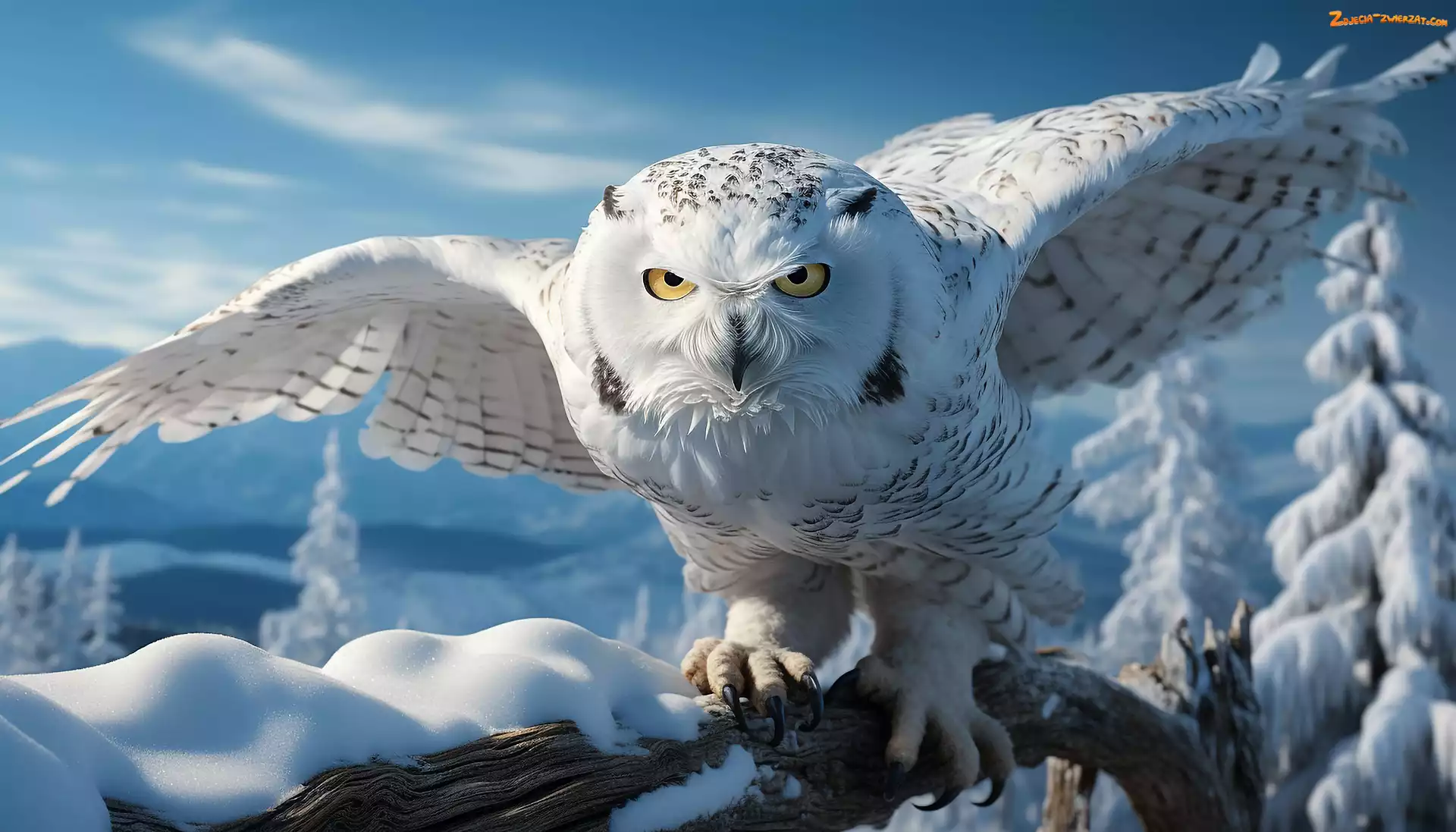 Zima, Konar, Grafika, Sowa śnieżna, Skrzydła
