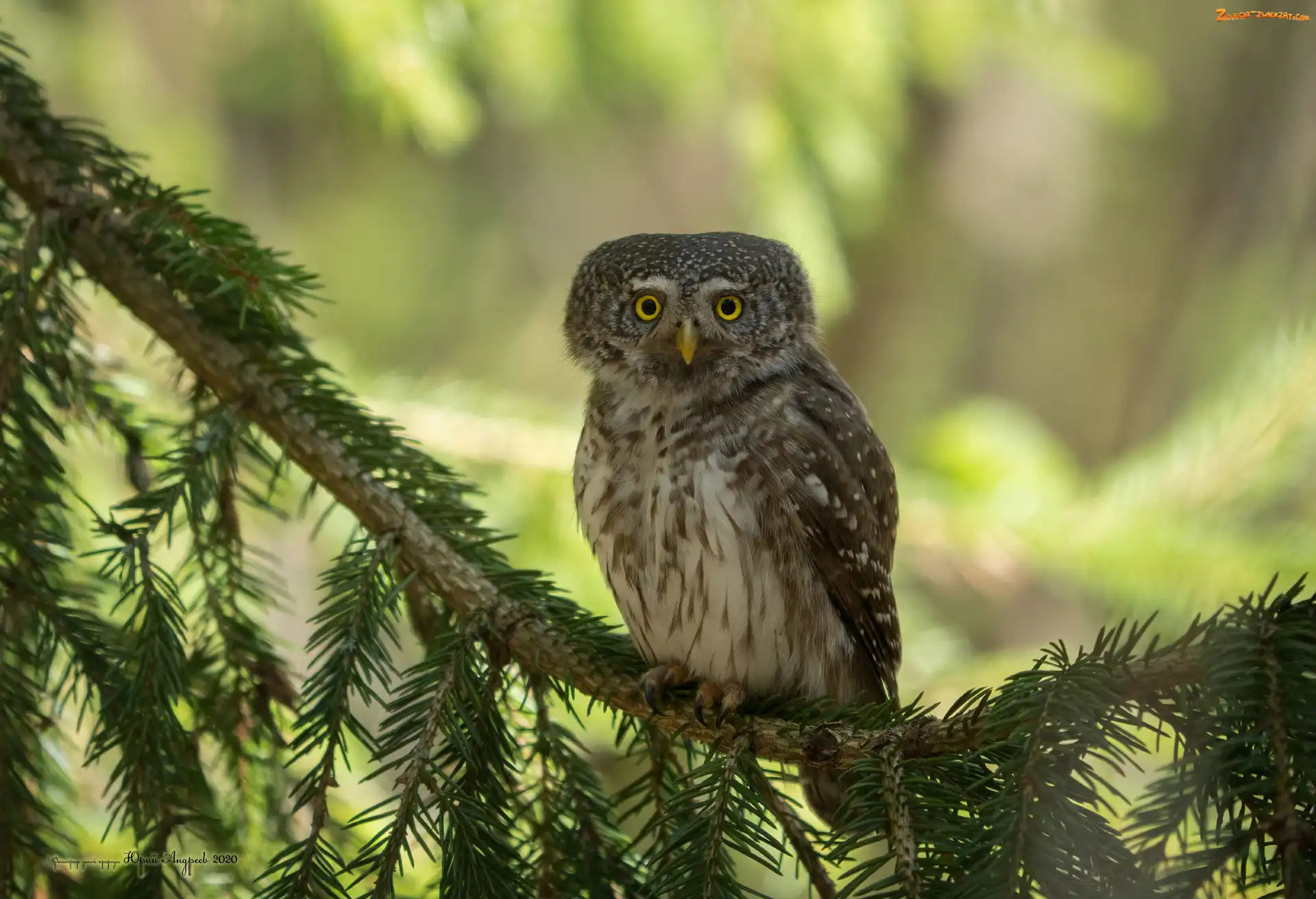 Zdjęcie: Sóweczka zwyczajna, Świerk, Sowa, Gałąź