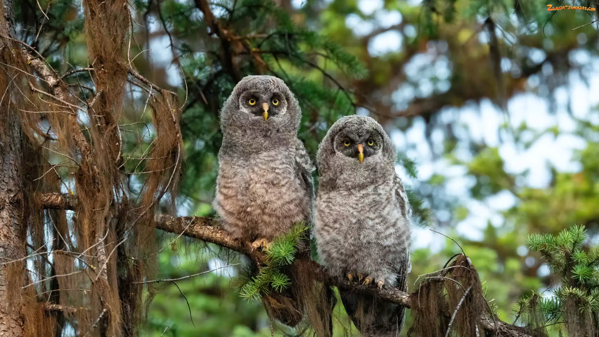 Konar, Puszczyki, Dwie, Sowy, Drzewo, Gałęzie