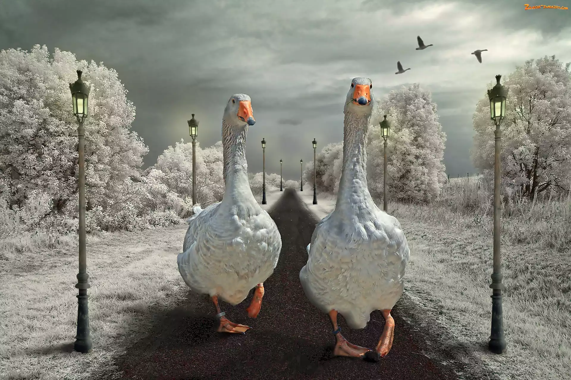 Zdjęcie: Spacer, Zima, Gęsi, Droga