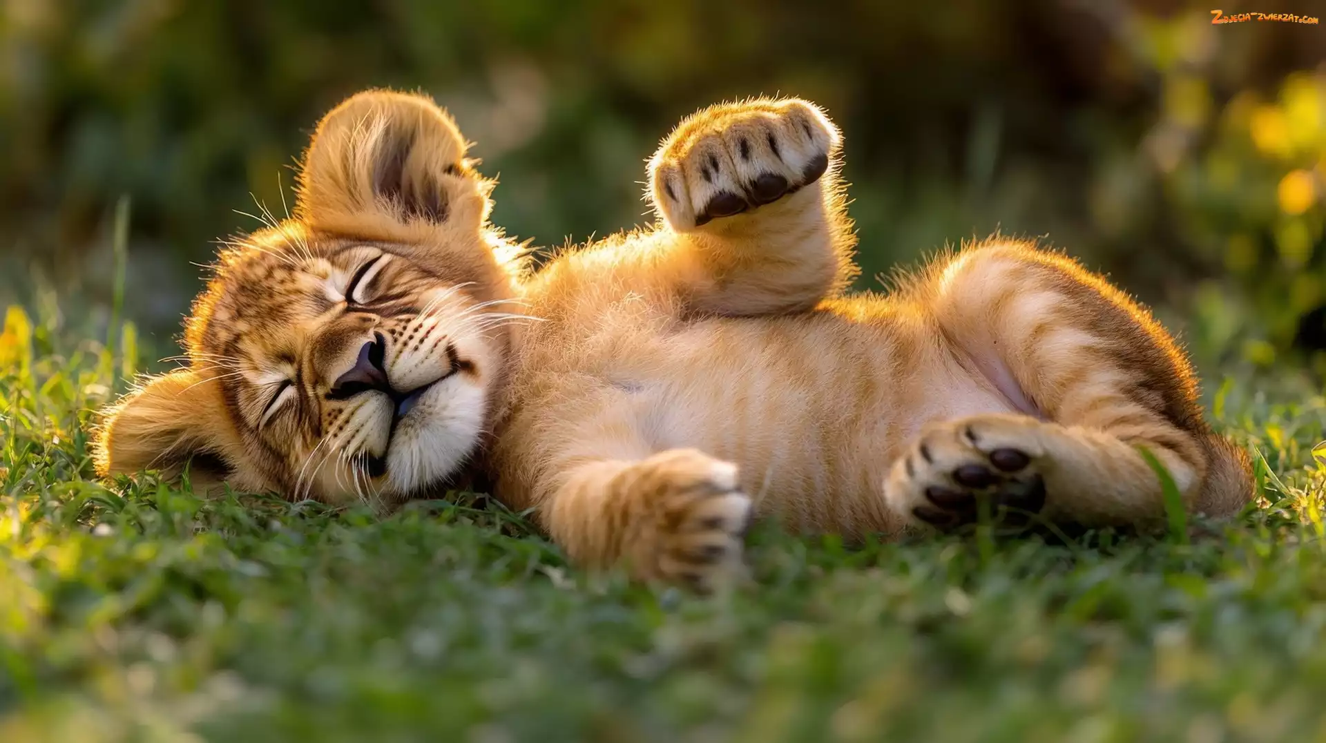 Zdjęcie: Trawa, Śpiące, AI, Lew, Lwiątko