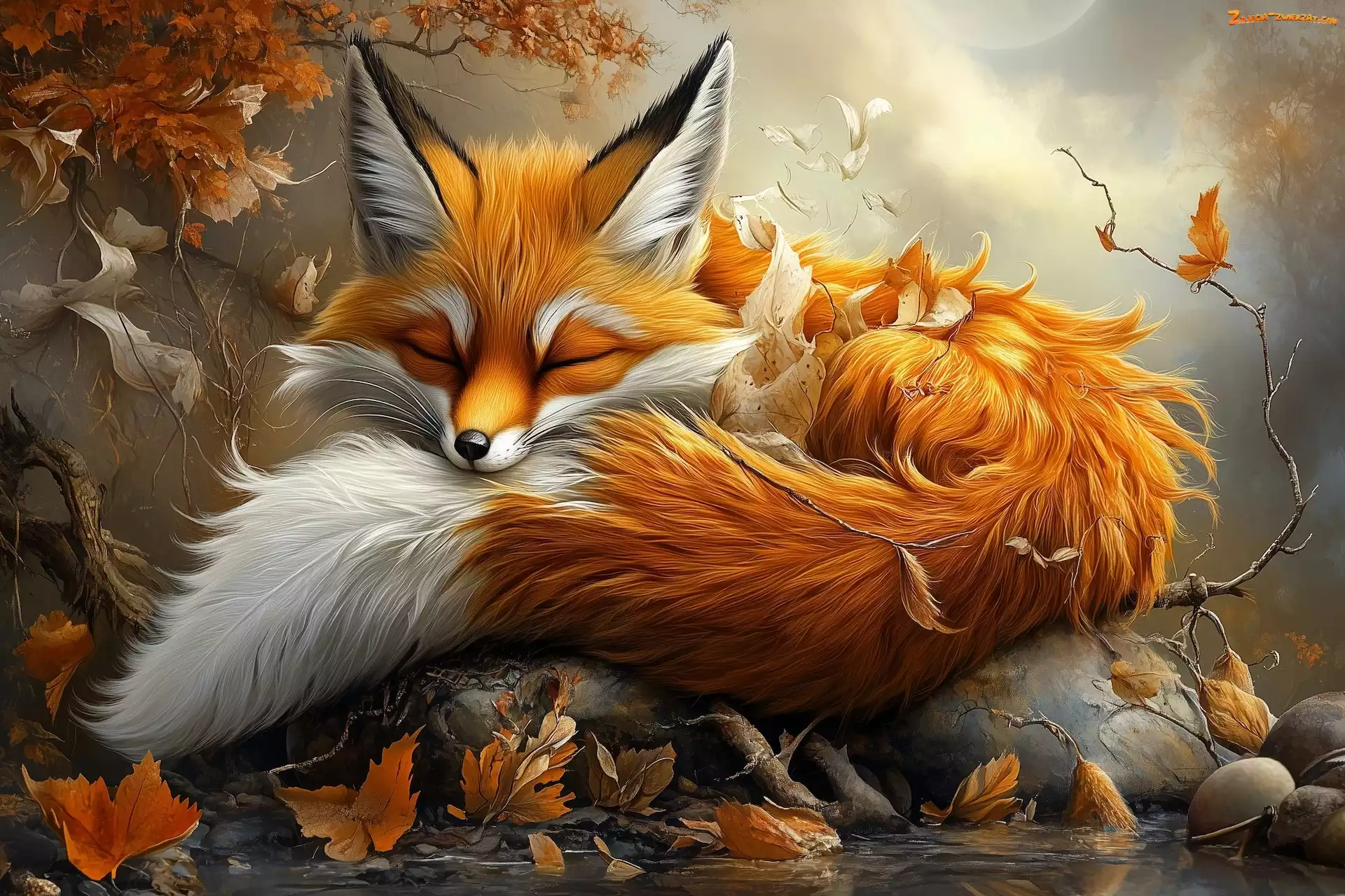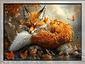 Zdjęcie: Jesienne, Lis, Grafika, Śpiący, Rudy, Liście