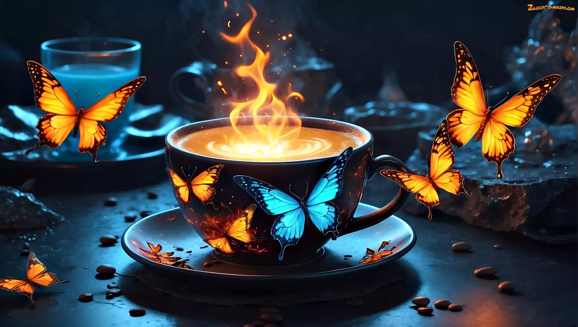 Zdjęcie: Grafika, Kawa, Filiżanka, Spodek, Motyle, Kolorowe