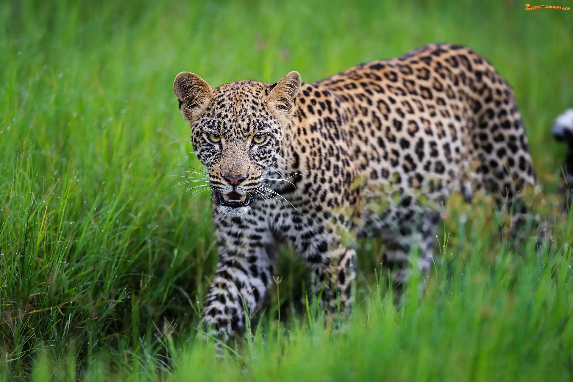 Spojrzenie, Trawa, Kot, Dziki, Lampart