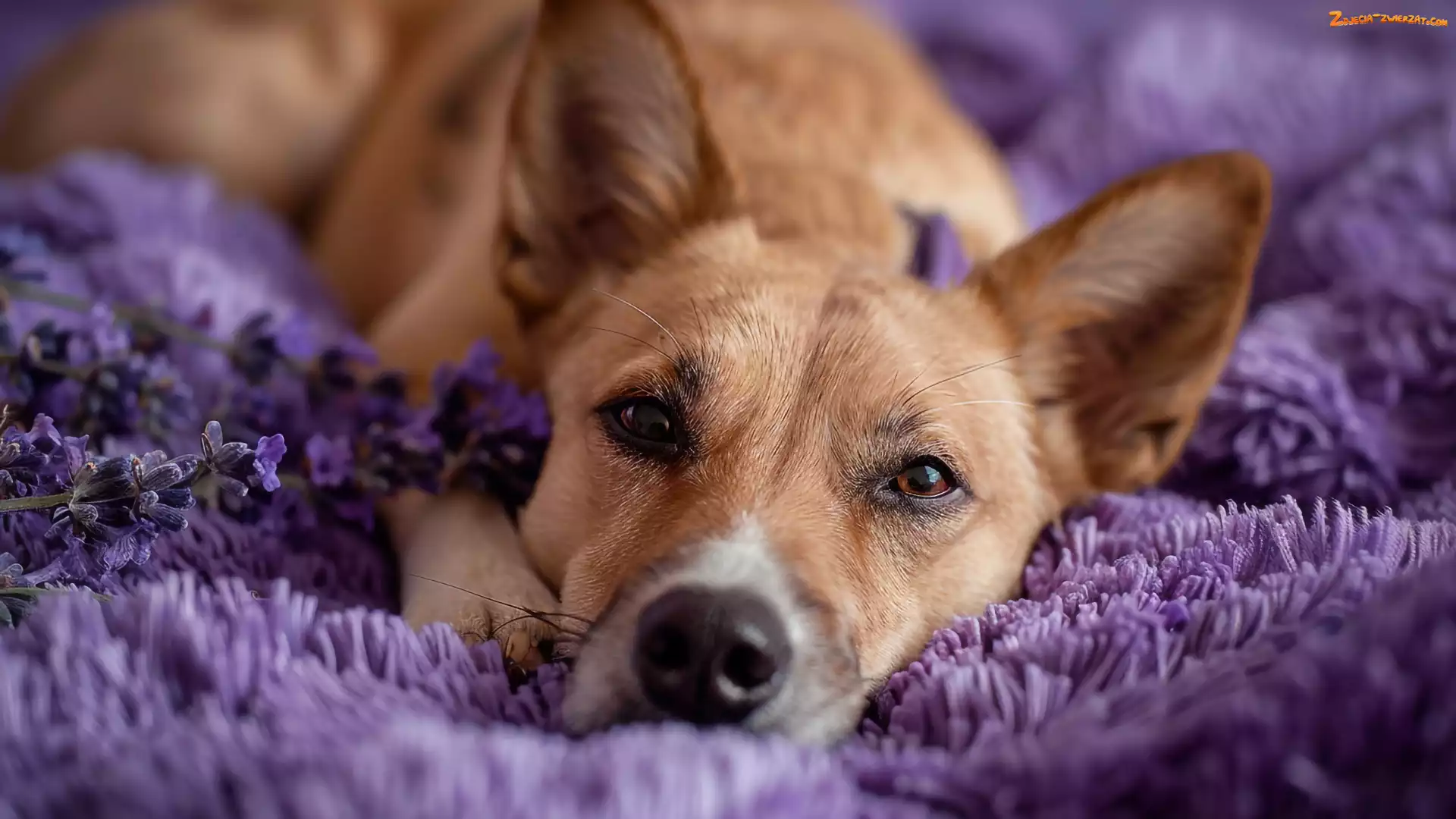 Zdjęcie: Fioletowy, Spojrzenie, Koc, Leżący, Pies