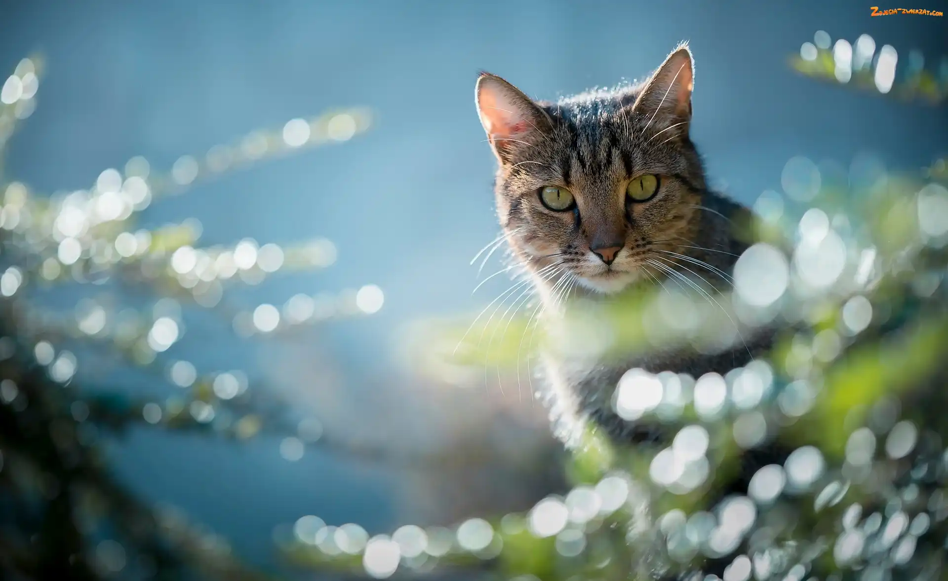 Zdjęcie: Spojrzenie, Światło, Kot, Gałązki