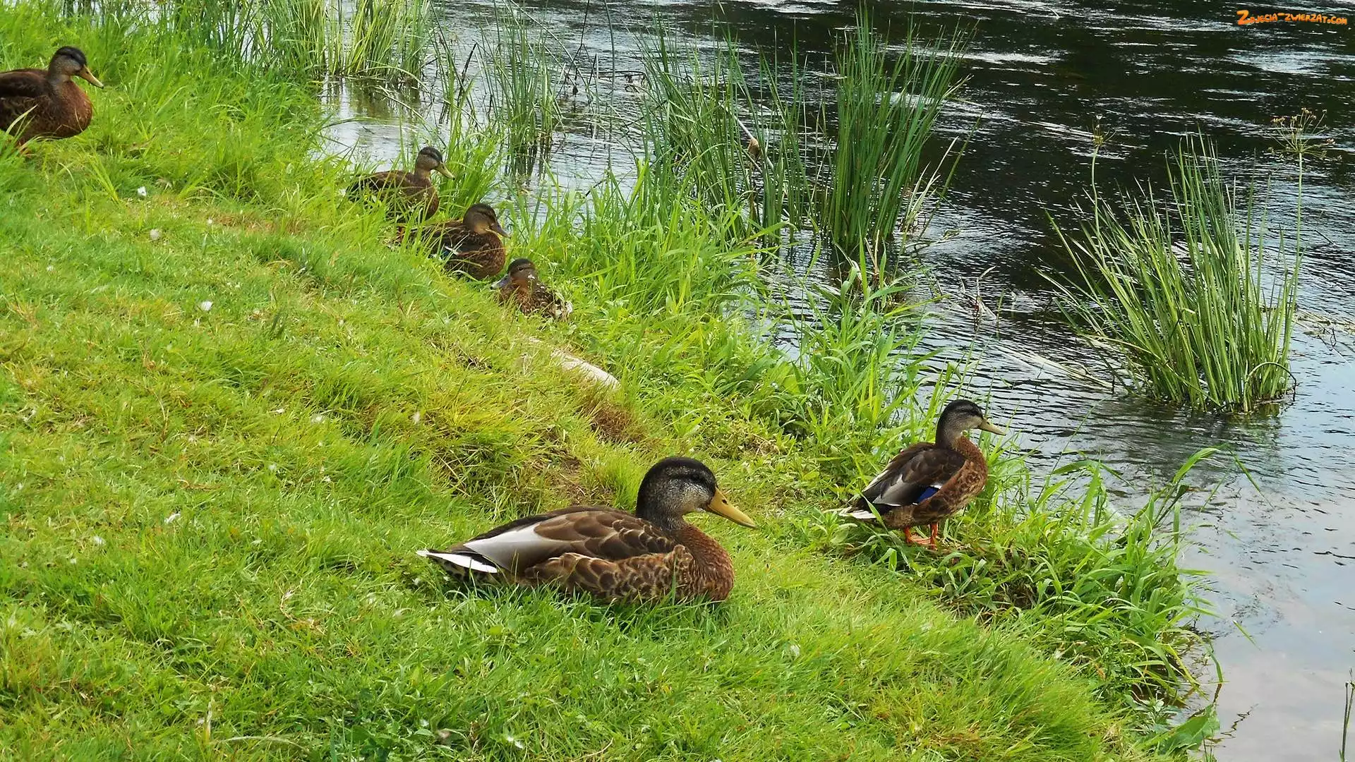 Zdjęcie: Trawa, Staw, Kaczki