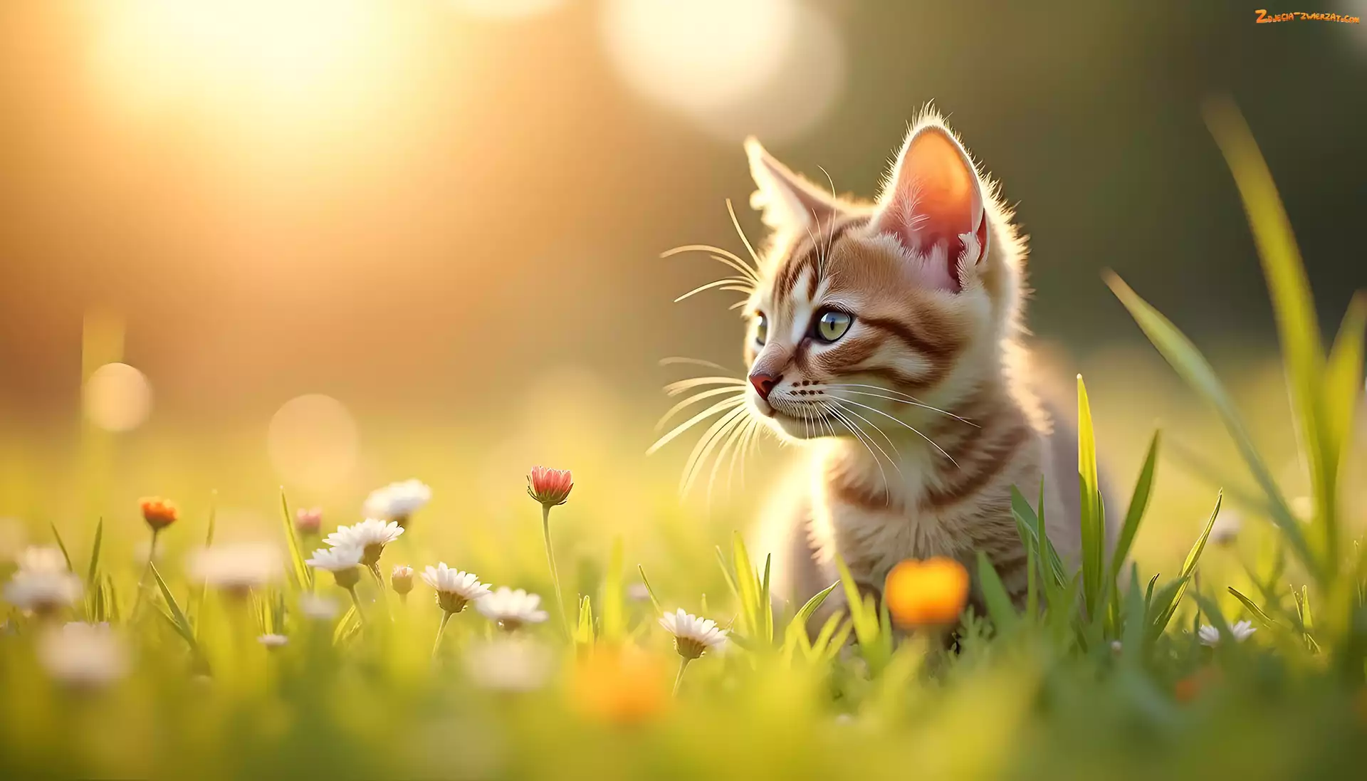 Zdjęcie: Kot, Trawa, Grafika, Stokrotki