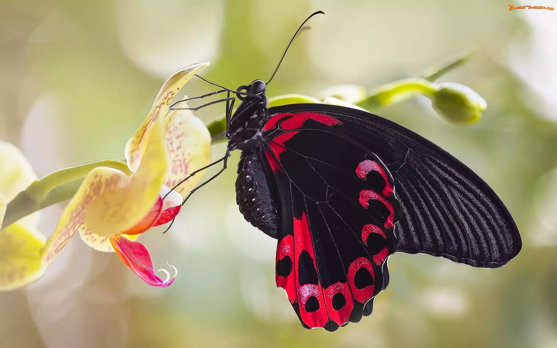 Zdjęcie: Makro, Czerwony Mormon, Czarny, Motyl, Papilio Rumanzovia, Storczyk
