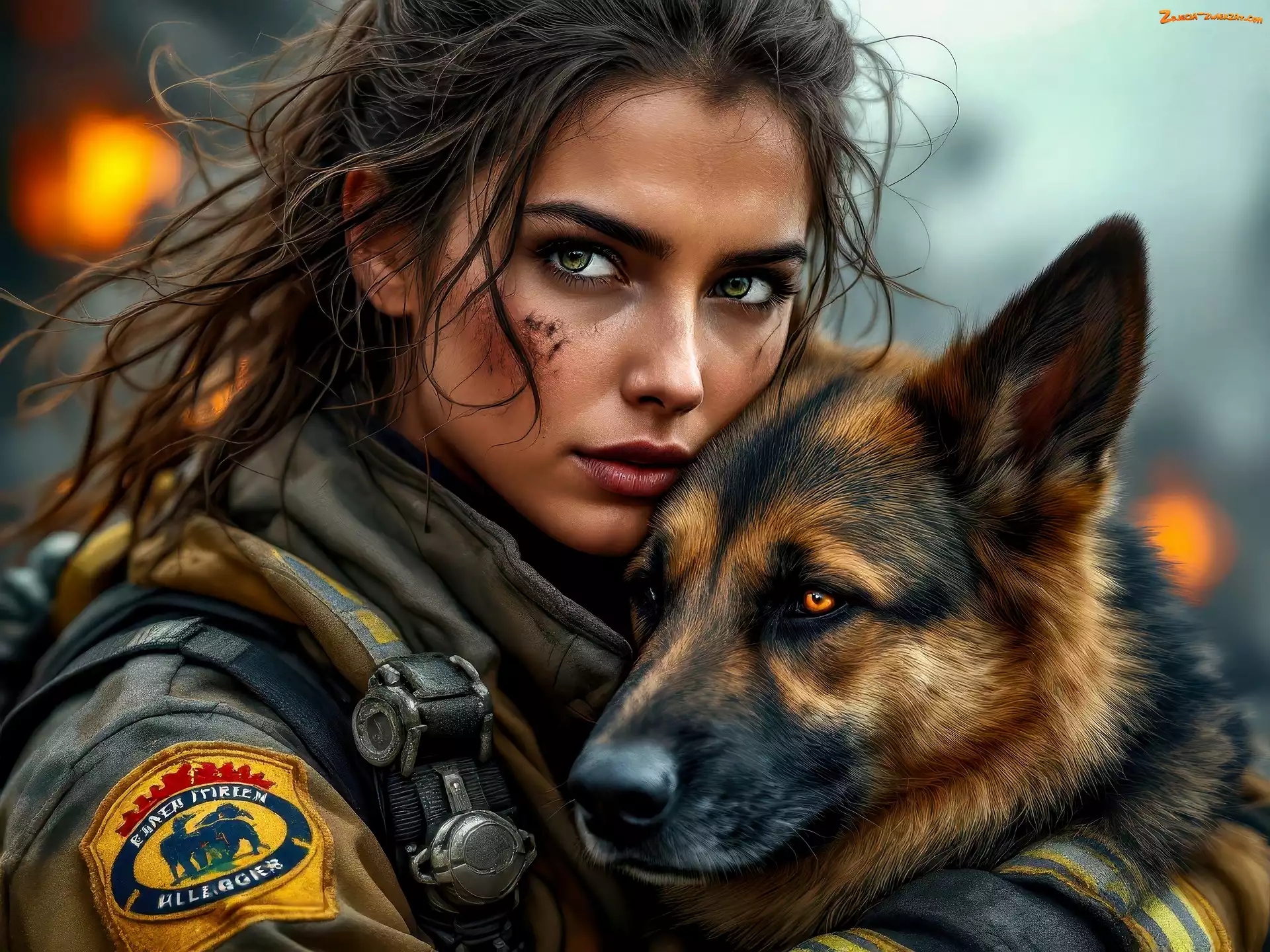 Zdjęcie: Kobieta, Strażaczka, Owczarek niemiecki, Pies