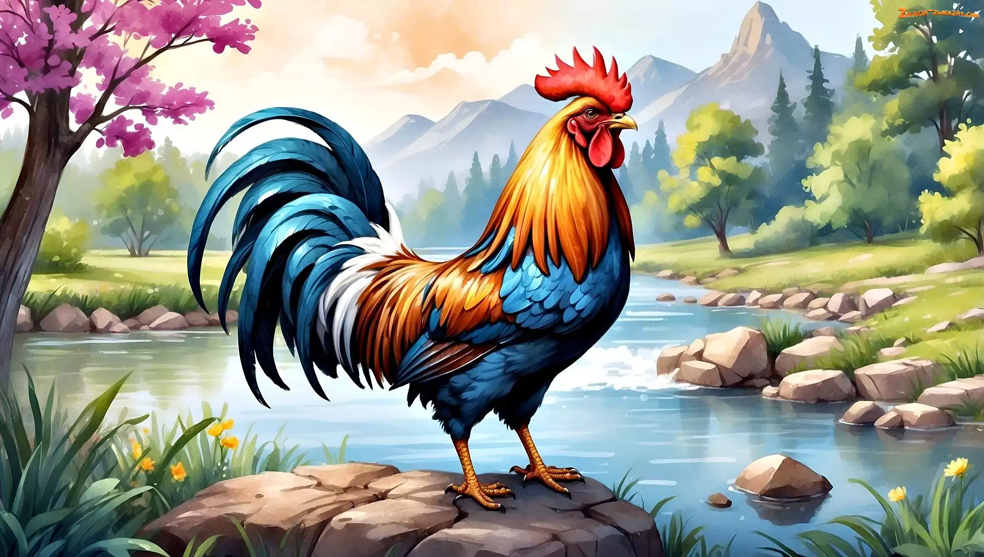 Zdjęcie: Góry, Strumień, Grafika, Kogut, Kamień