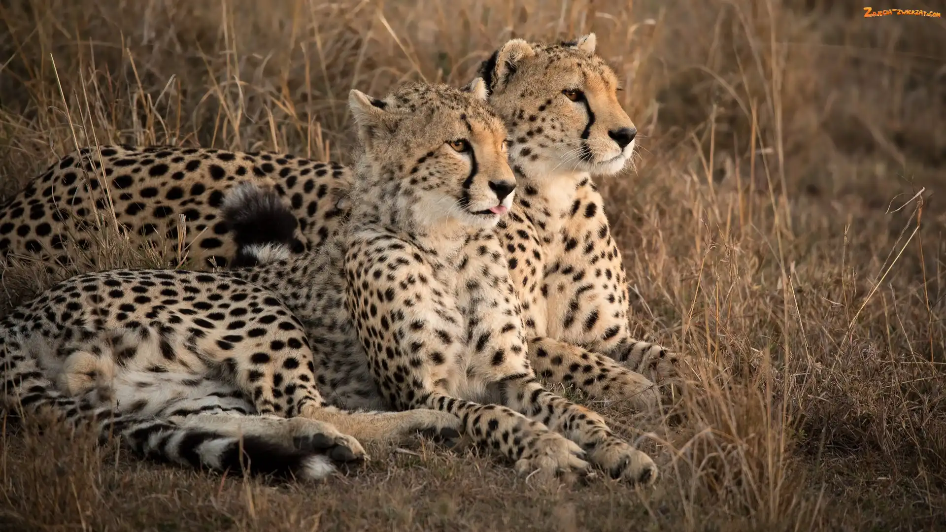 Zdjęcie: Dwa, Gepardy, Trawa, Sucha