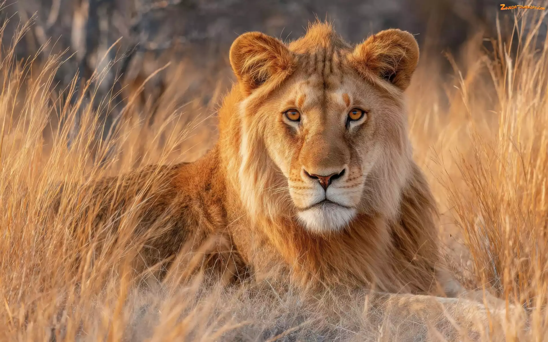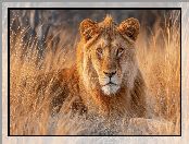 Zdjęcie: Lew, Leżący, Trawa, Sucha