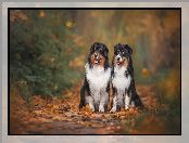 Liście, Owczarki australijskie, Suche, Psy, Dwa