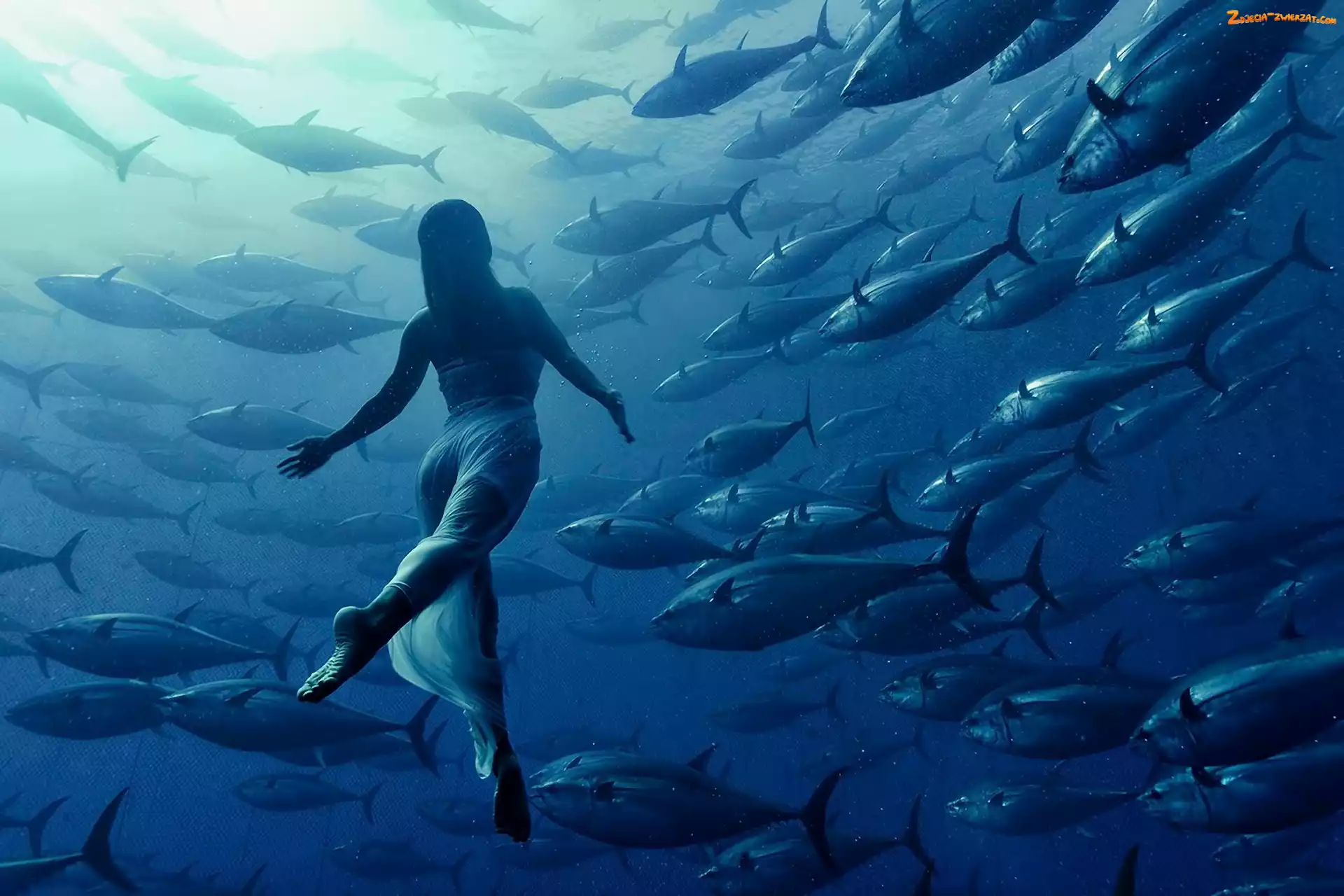 Zdjęcie: Sukienka, Woda, Kobieta, Ryby