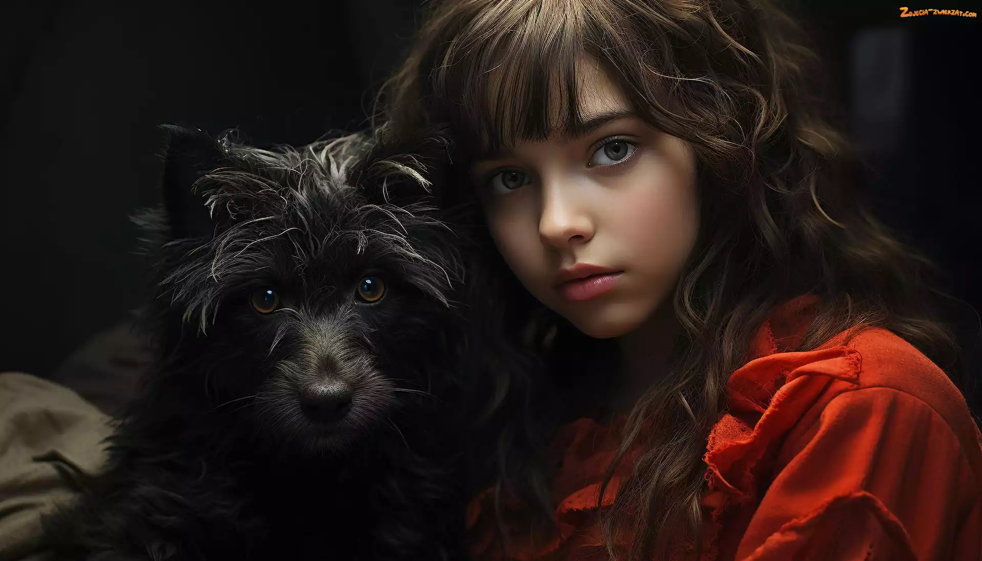 Zdjęcie: Czarny, Sukienka, Pies, Dziewczynka, Czerwona