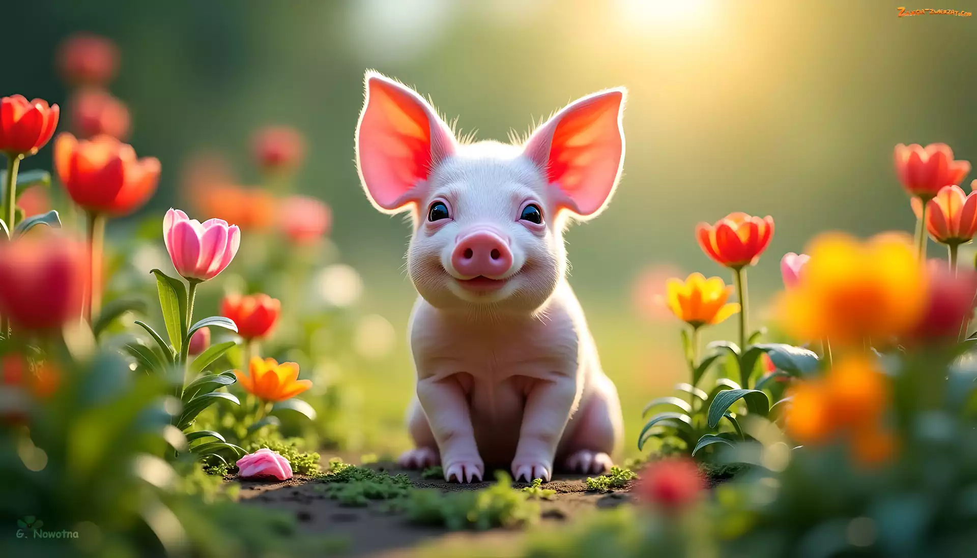 Zdjęcie: Prosiaczek, Świnka, Grafika AI, Kwiaty