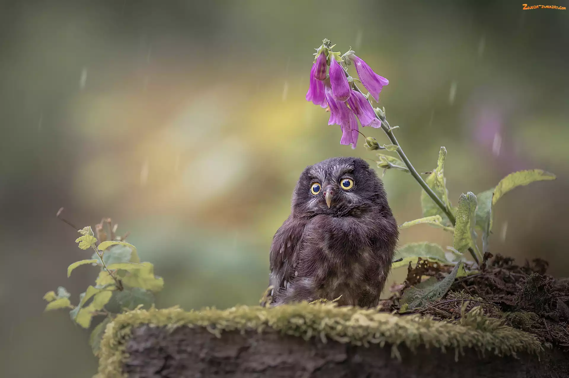 Zdjęcie: Syczek białobrewy, Rośliny, Sowa, Kwiatek