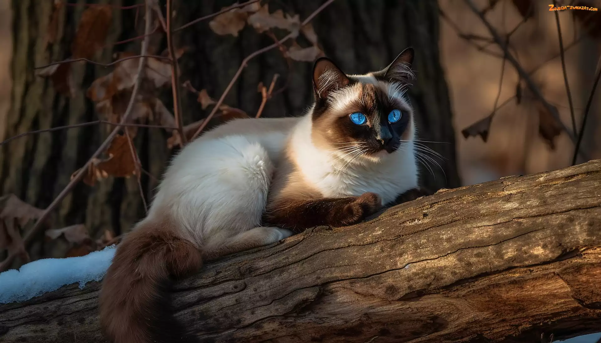 Zdjęcie: Kot syjamski, Niebieskie, Konar, Oczy