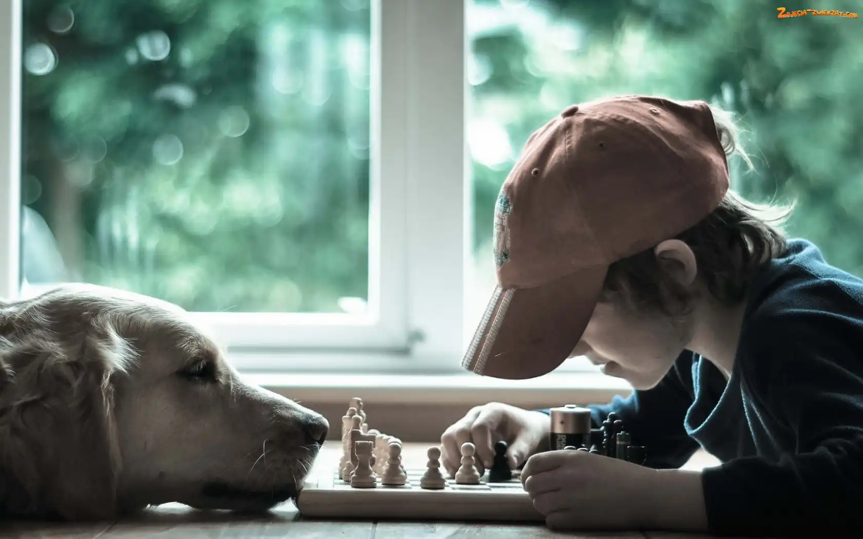 Zdjęcie: Szachy, Golden Retriever, Chłopiec