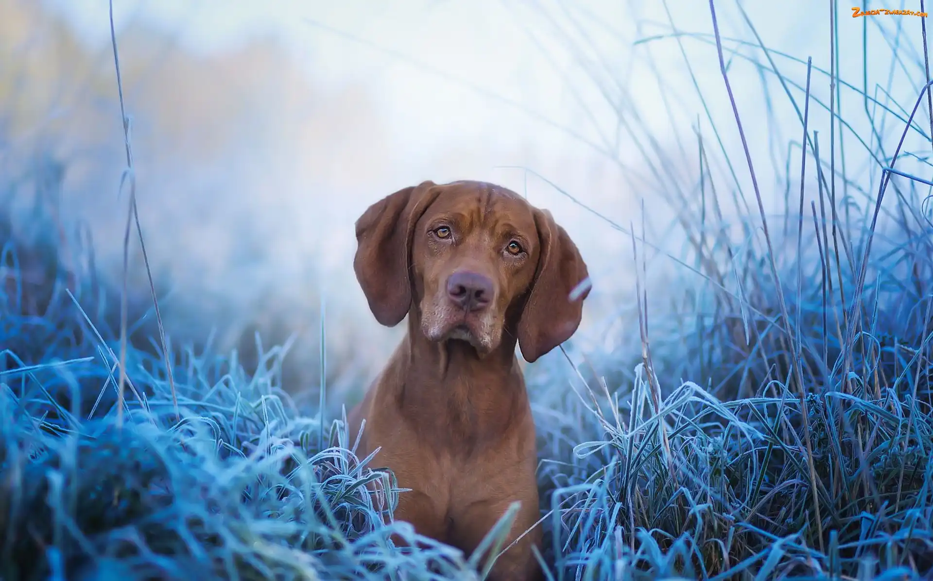 Zdjęcie: Szadź, Wyżeł węgierski, Trawa