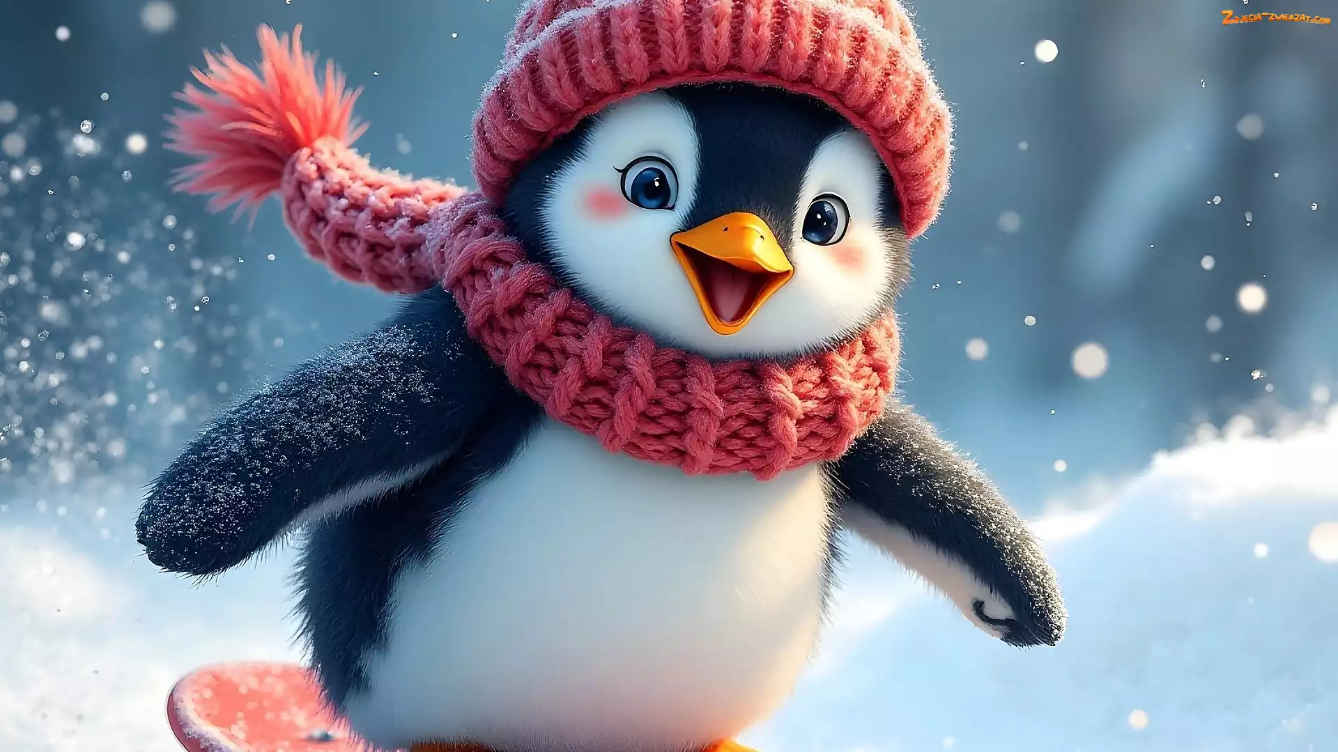 Zima, Pingwin, Czapka, Szal