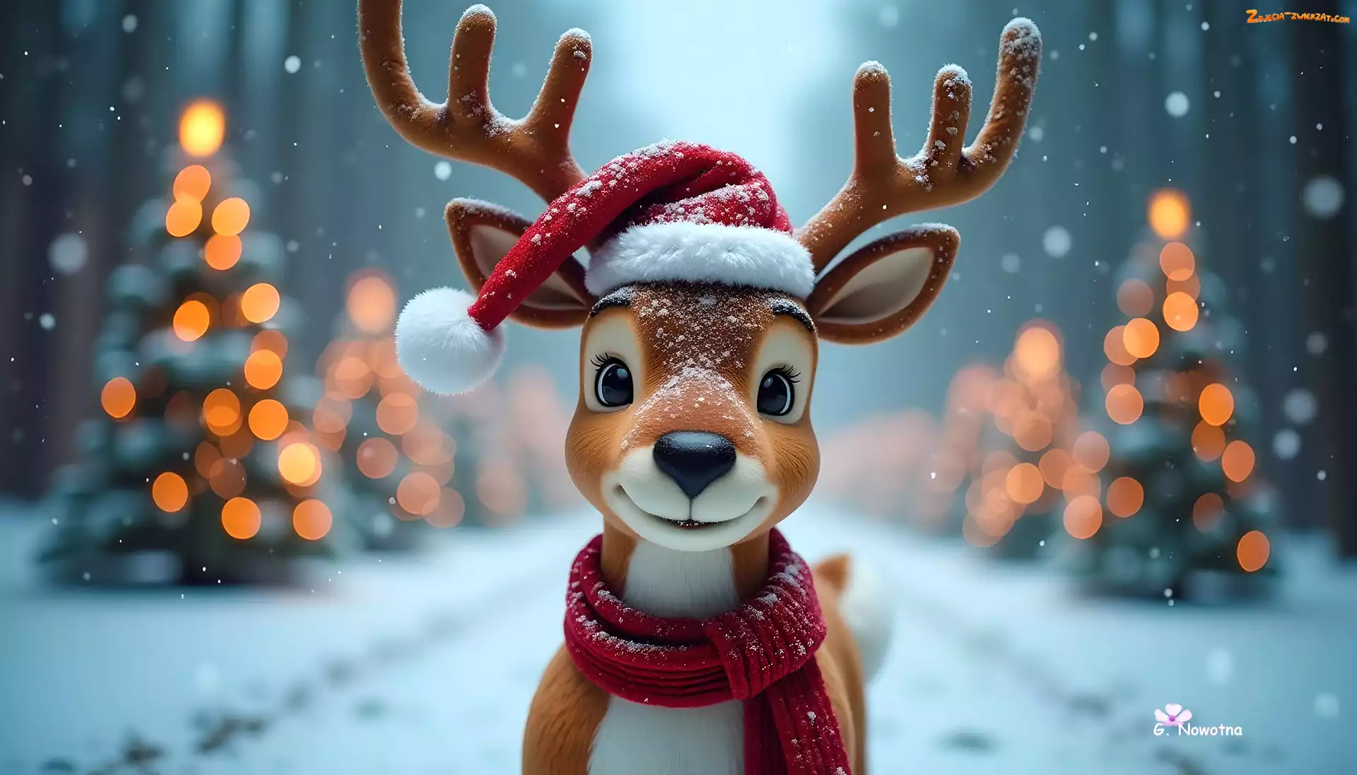 Zdjęcie: Śnieg, Renifer, Czapka, Szalik, Grafika, Mikołaja, Zima
