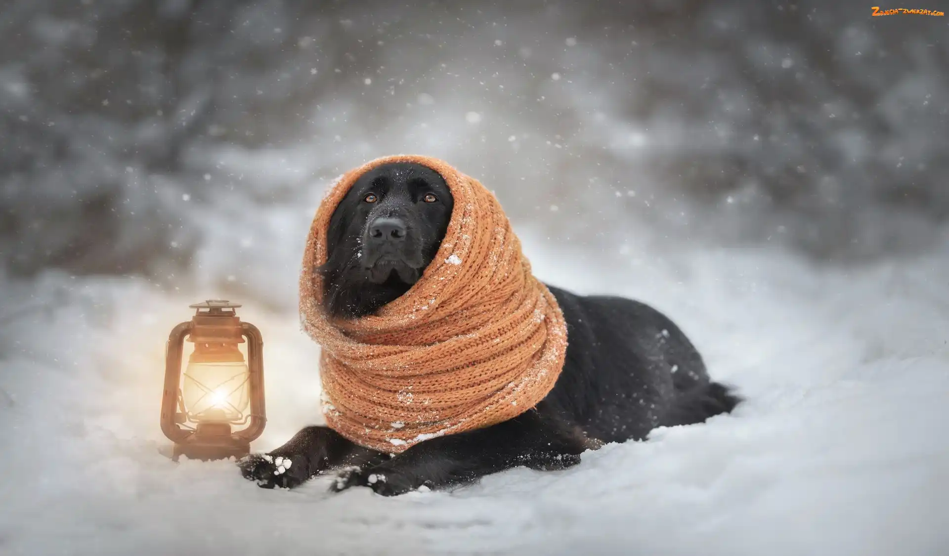 Zdjęcie: Szalik, Zima, Pies, Lampa