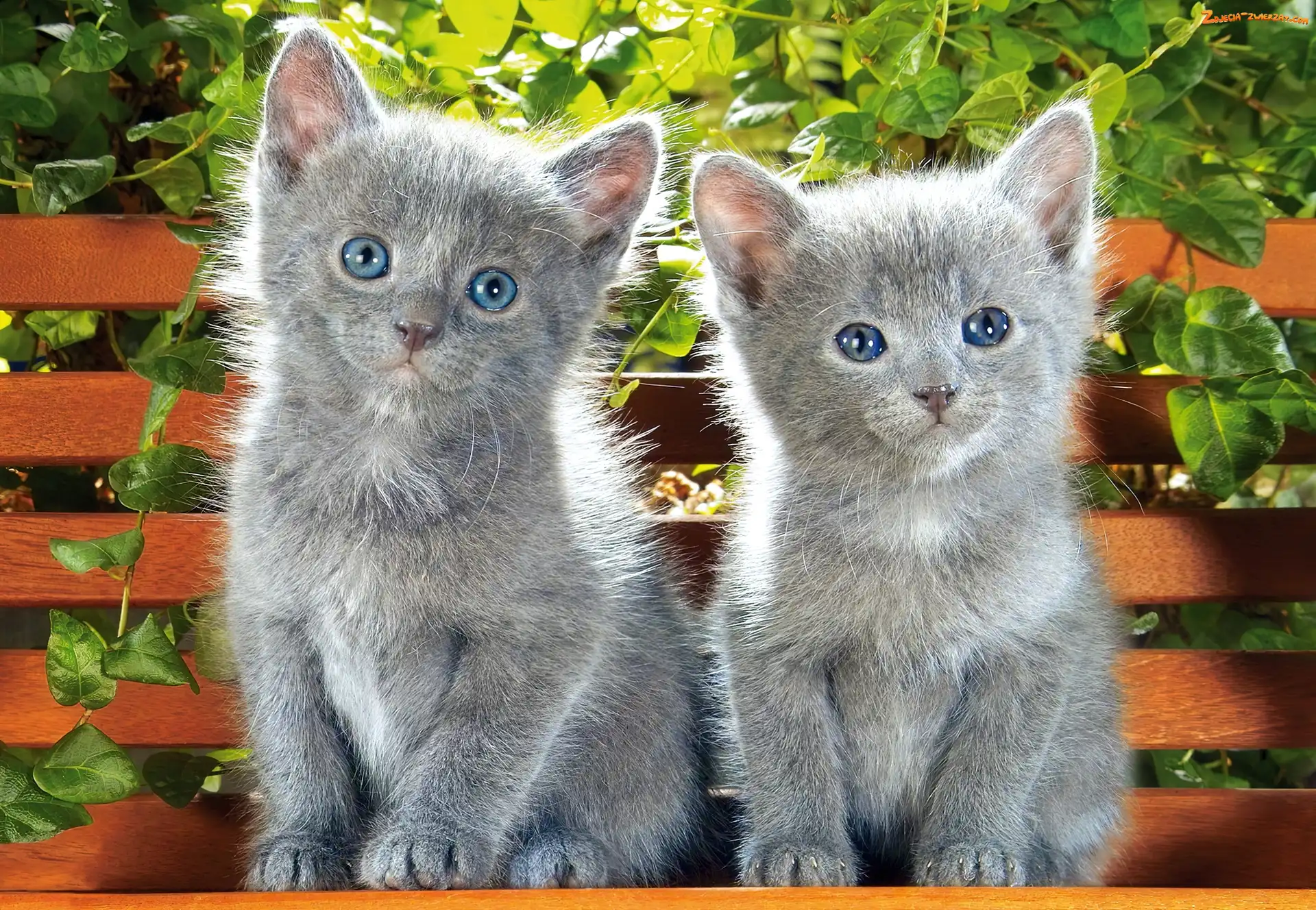 Zdjęcie: Szare, Ławka, Dwa, Kotki