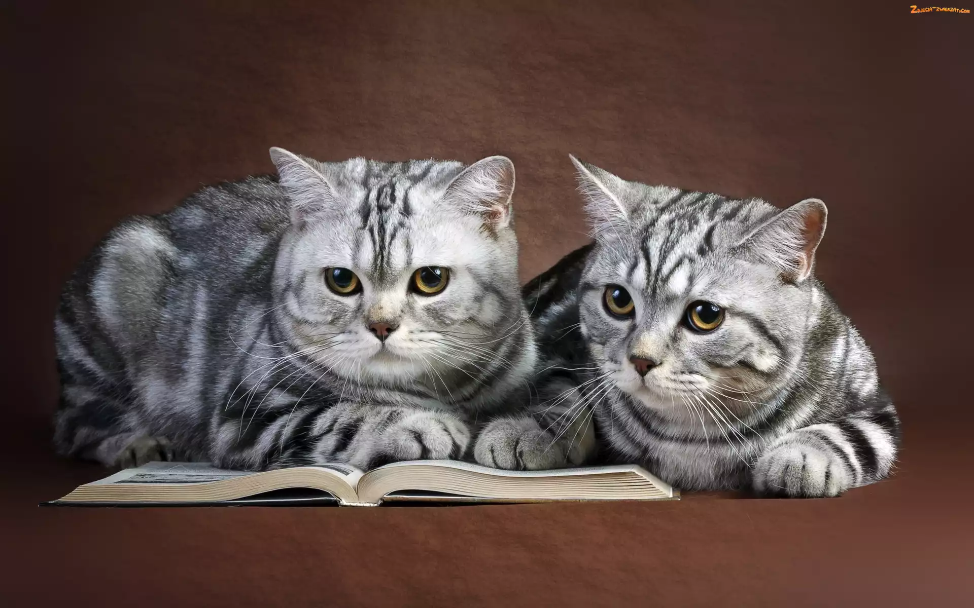 Zdjęcie: Brytyjski pręgowany, Książka, Szare, Dwa, Kotki