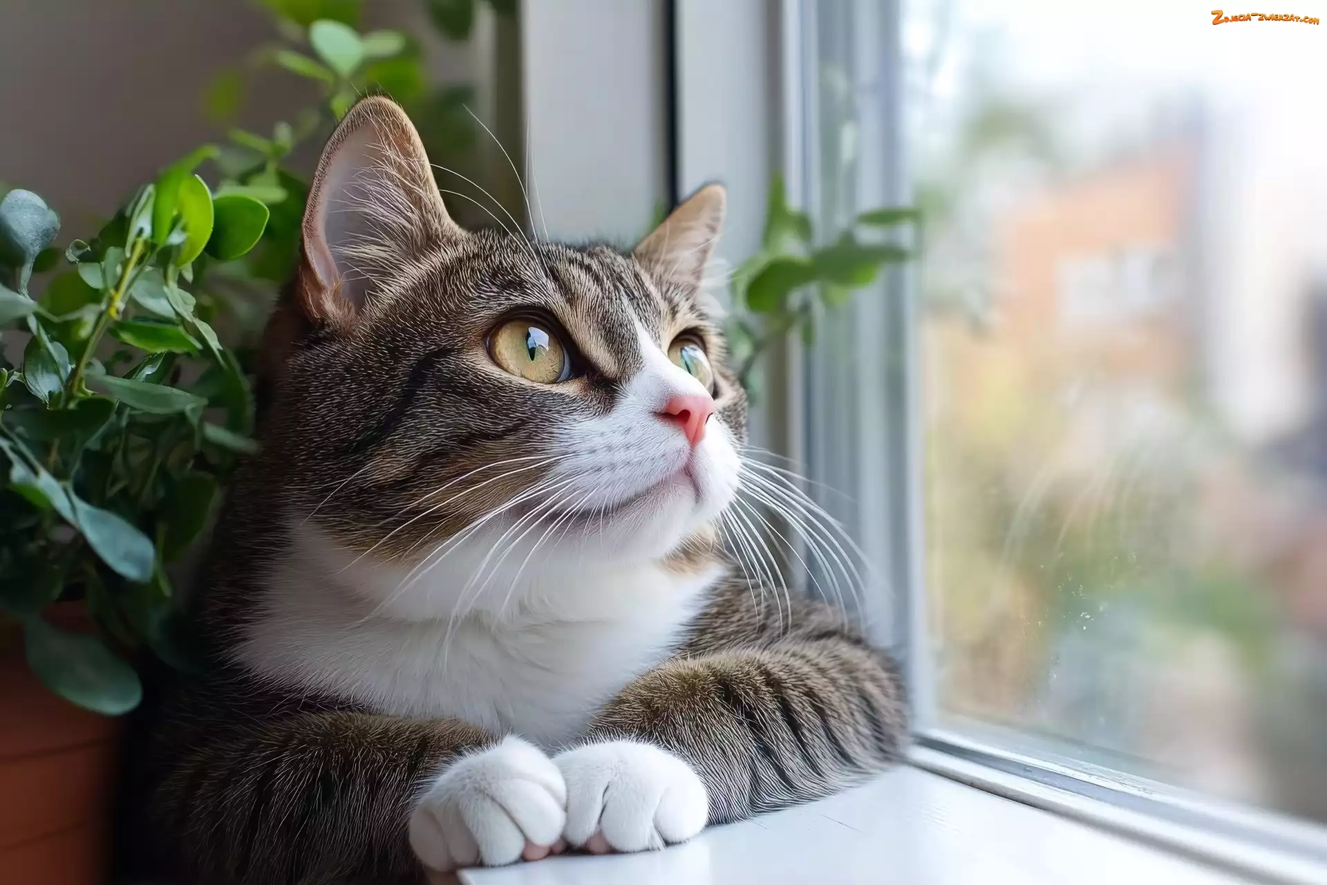 Biało-szary, Kot, Parapet, Okno