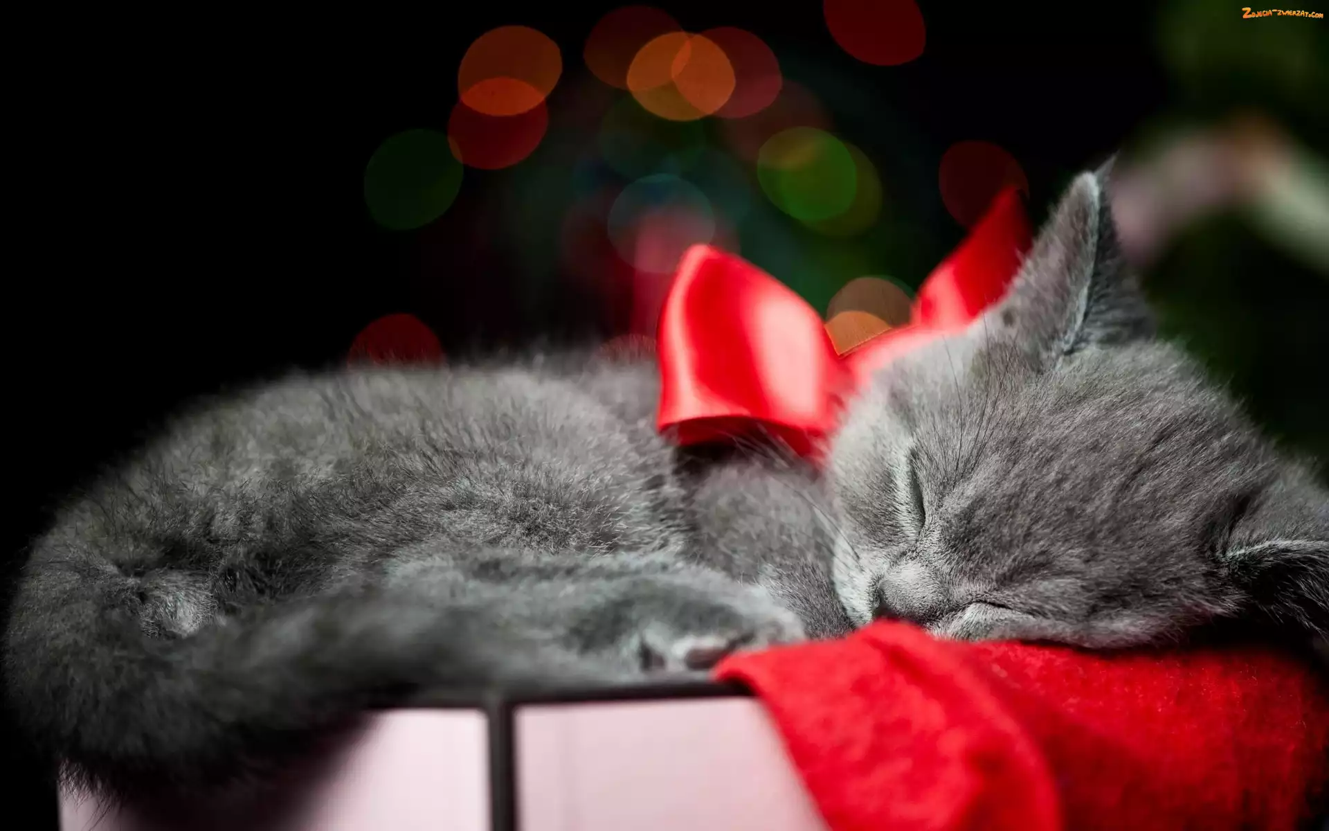 Zdjęcie: Szary, Kokarda, Mały, Kotek