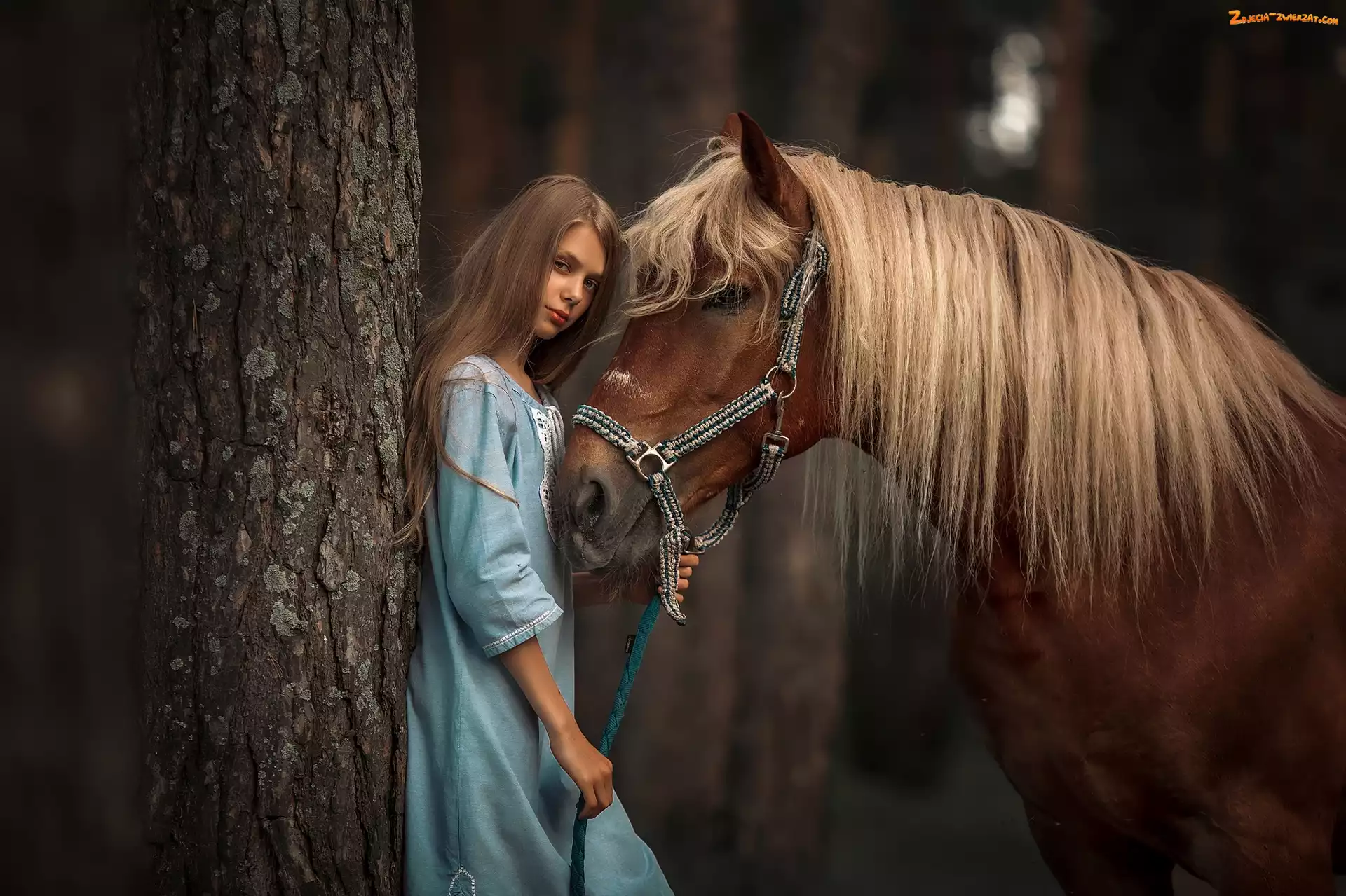 Zdjęcie: Szatynka, Drzewo, Dziewczyna, Koń