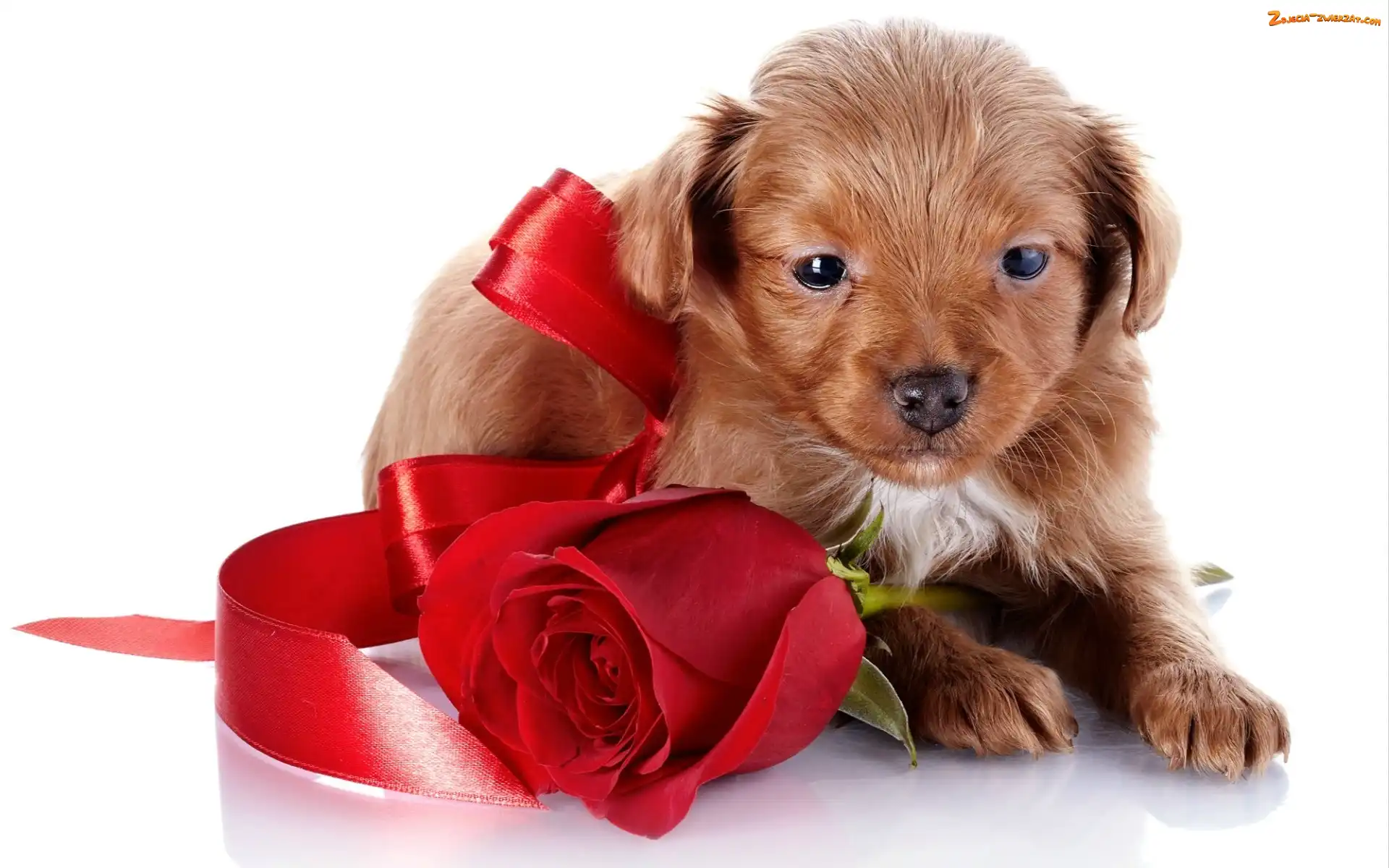 Szczeniaczek, Róża, Słodki, Czerwona