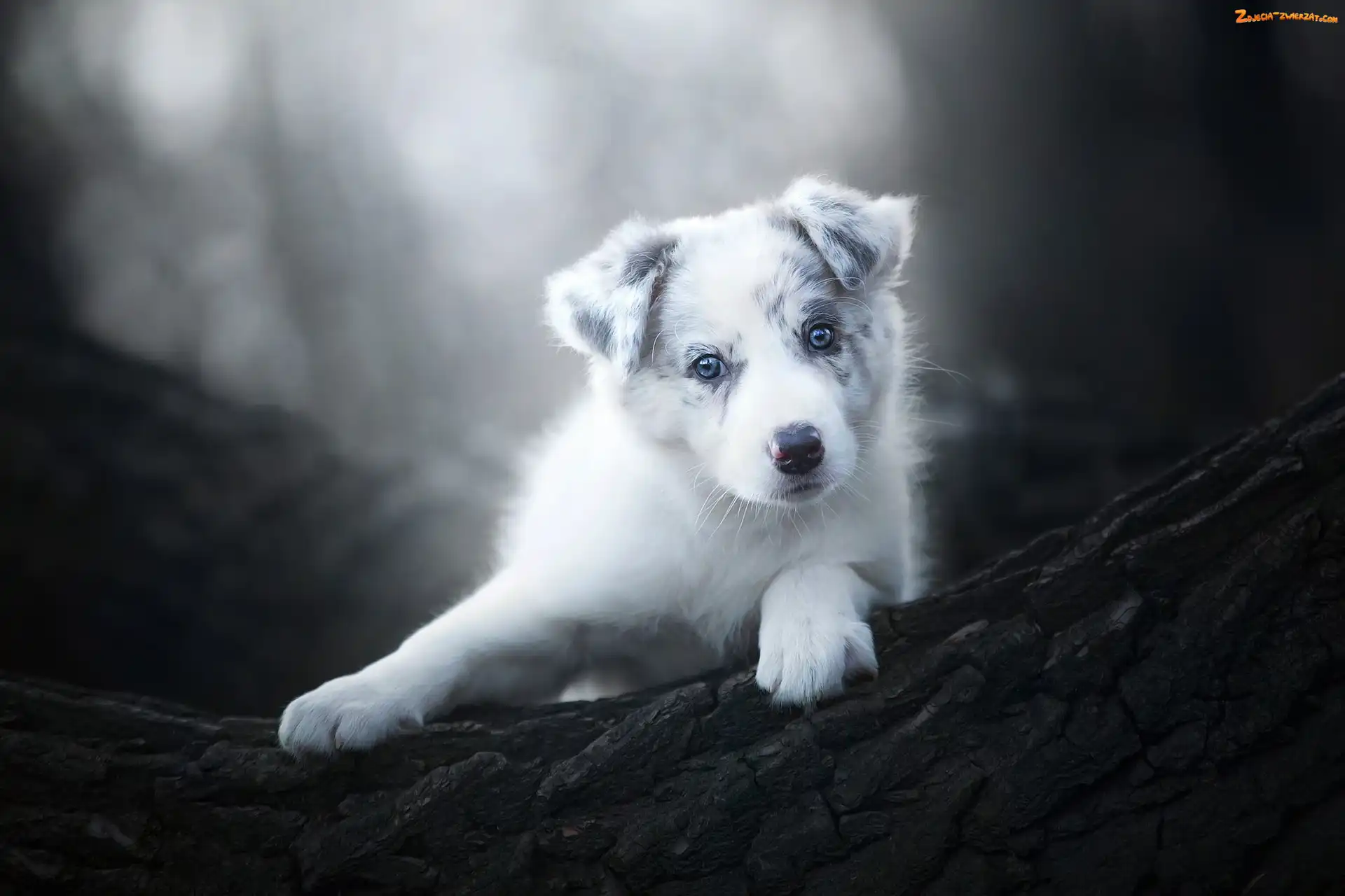 Zdjęcie: Drzewo, Szczeniak, Tło, Rozmyte, Border collie, Kora