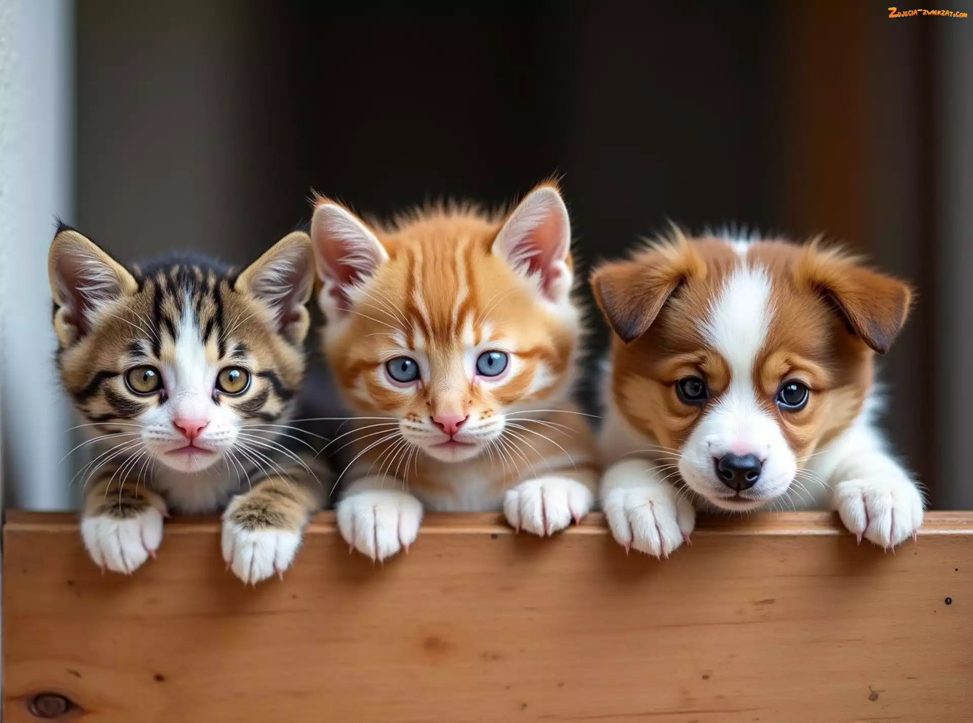 Zdjęcie: Dwa, Koty, Deska, Szczeniak