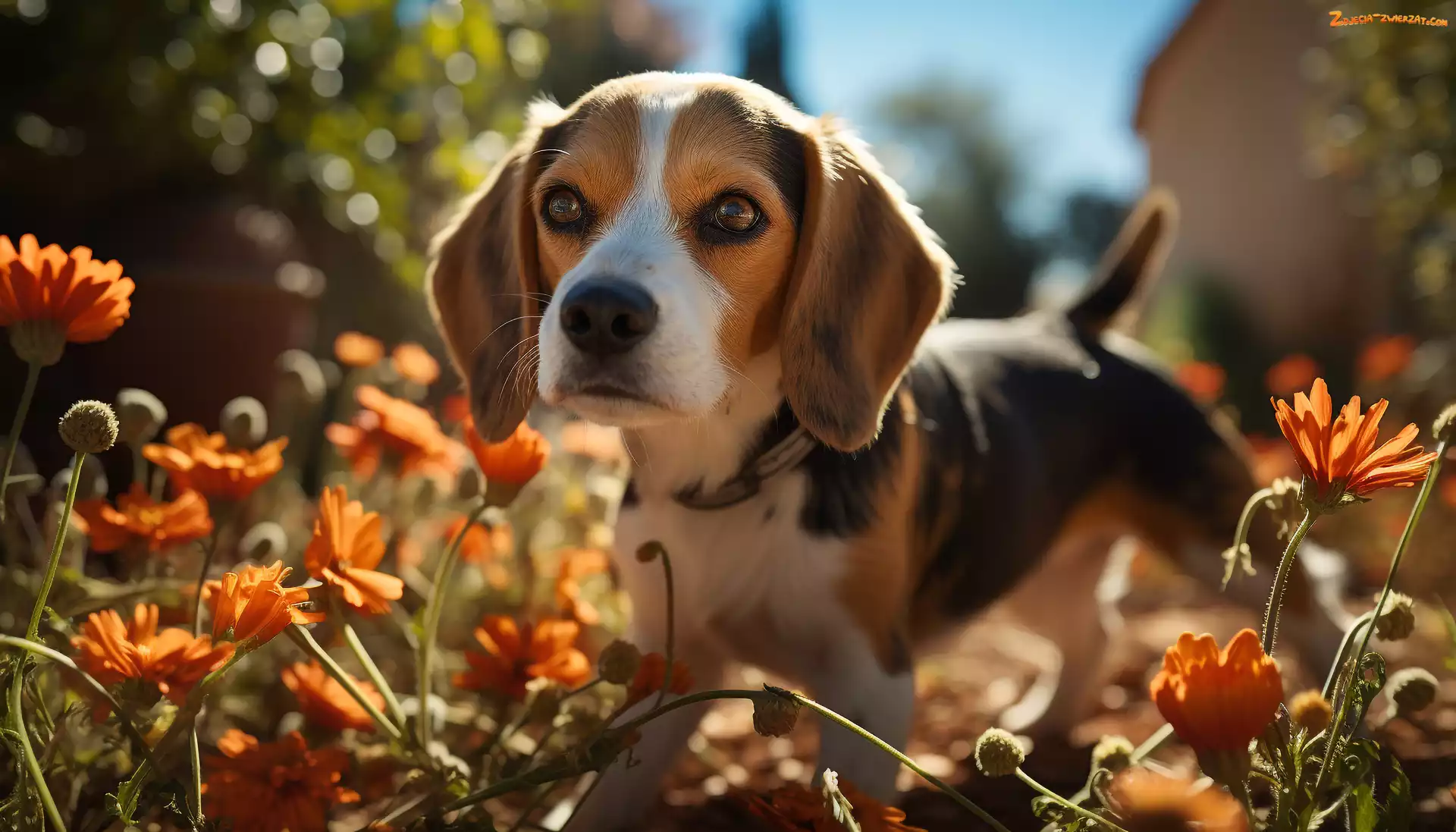 Zdjęcie: Kwiaty, Szczeniak, Grafika, Beagle, Pies