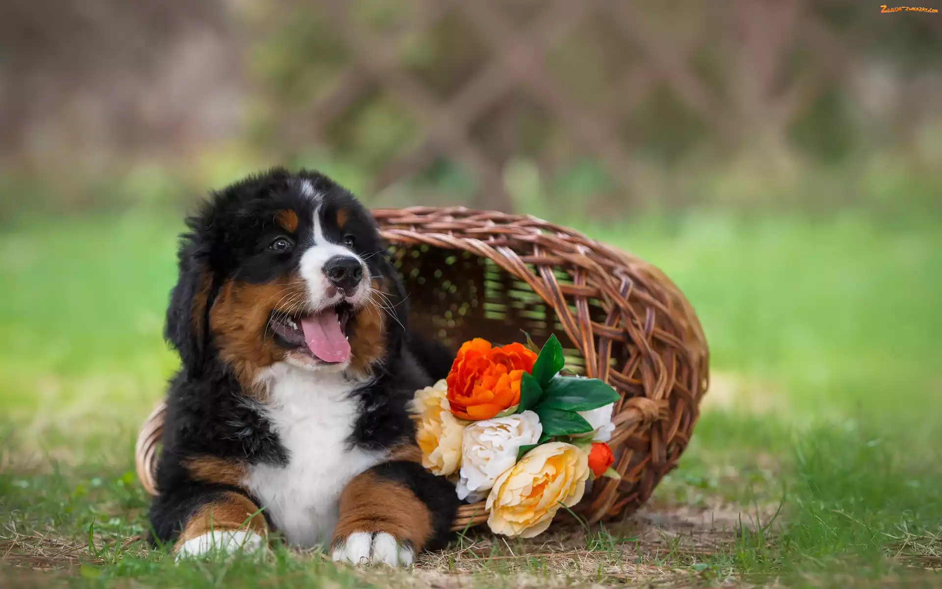 Szczeniak, Kwiaty, Berneński pies pasterski, Koszyk