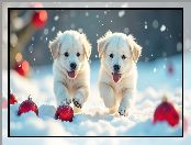 Śnieg, Dwa, Białe, Szczeniaki, AI, Psy, Bombki
