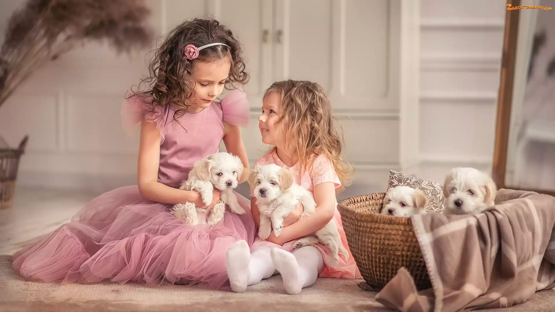 Zdjęcie: Szczeniaki, Psy, Dziewczynki, Dzieci, Kosz