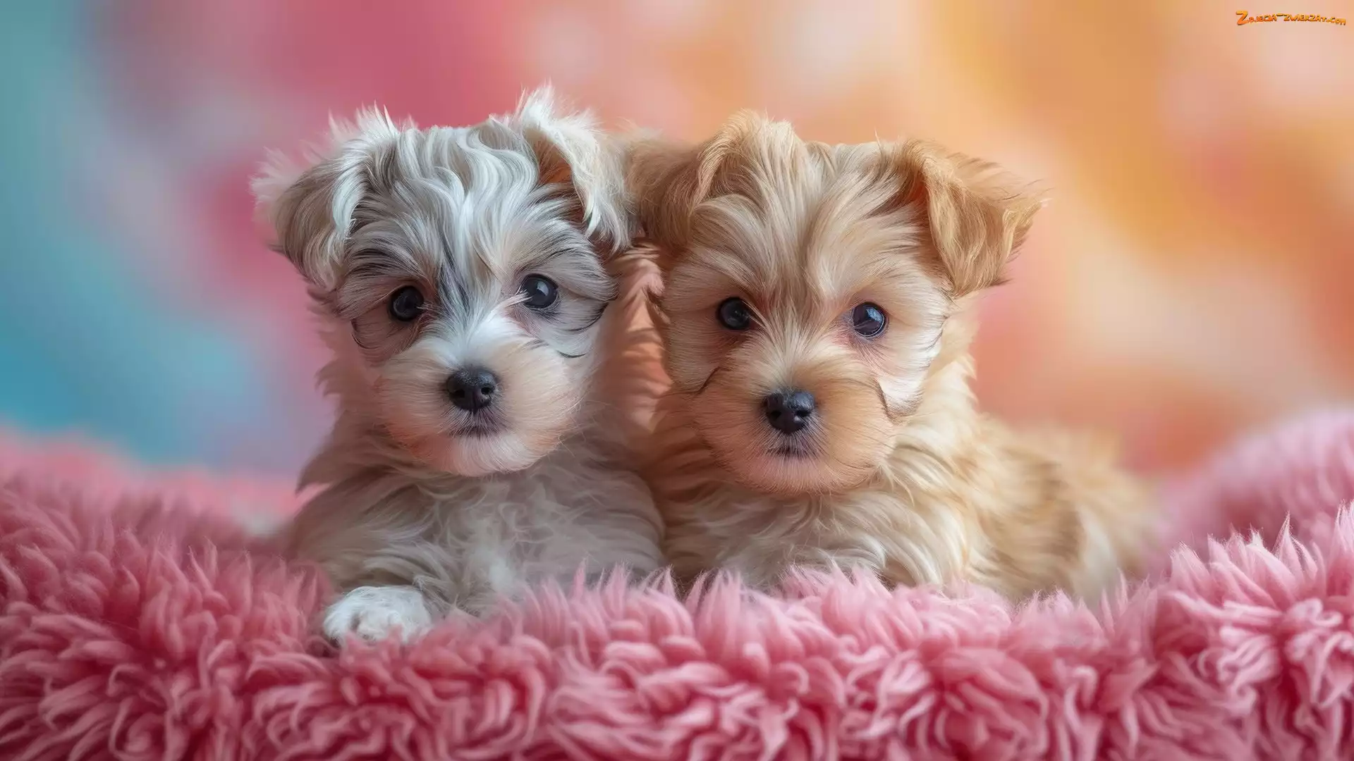 Zdjęcie: Różowe, Szczeniaki, Posłanie, Dwa, Psy